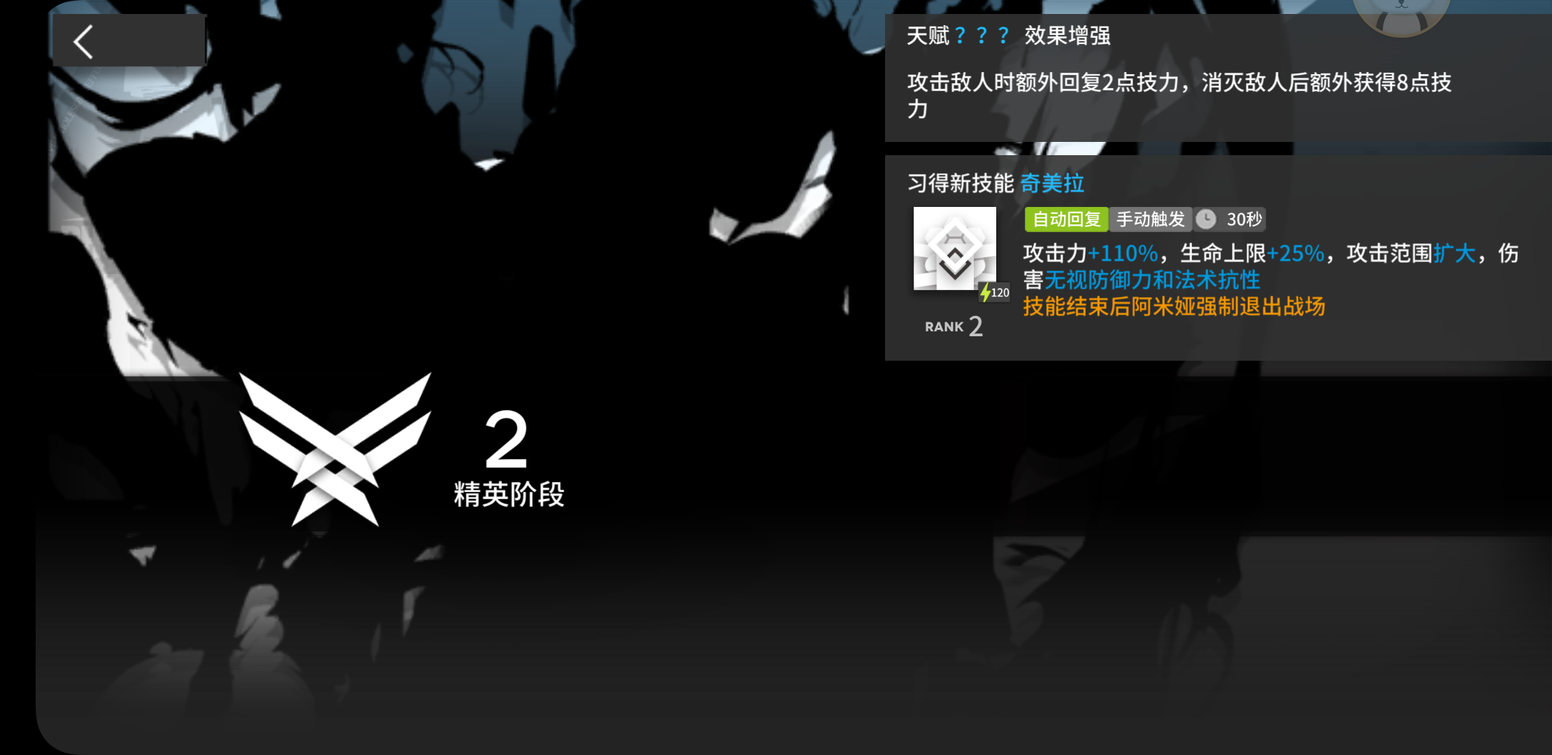 ④精英化(精英化所需等级、芯片、材料),精英后习得的天赋和技能。