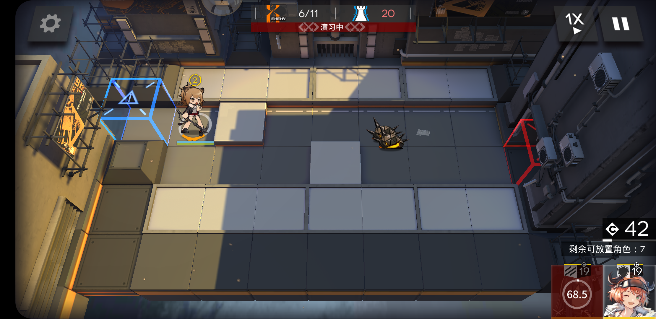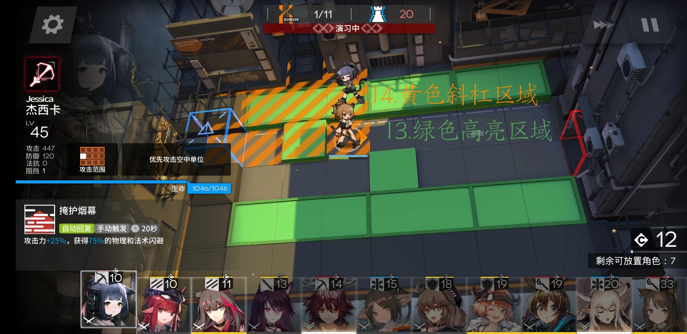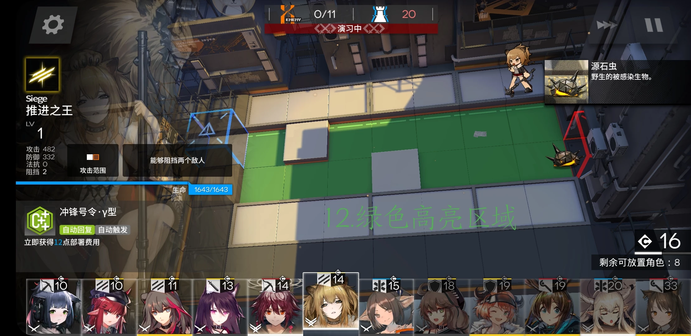 16场上干员详细状态(红色斜杠为技能范围,技能sp点数等等)
