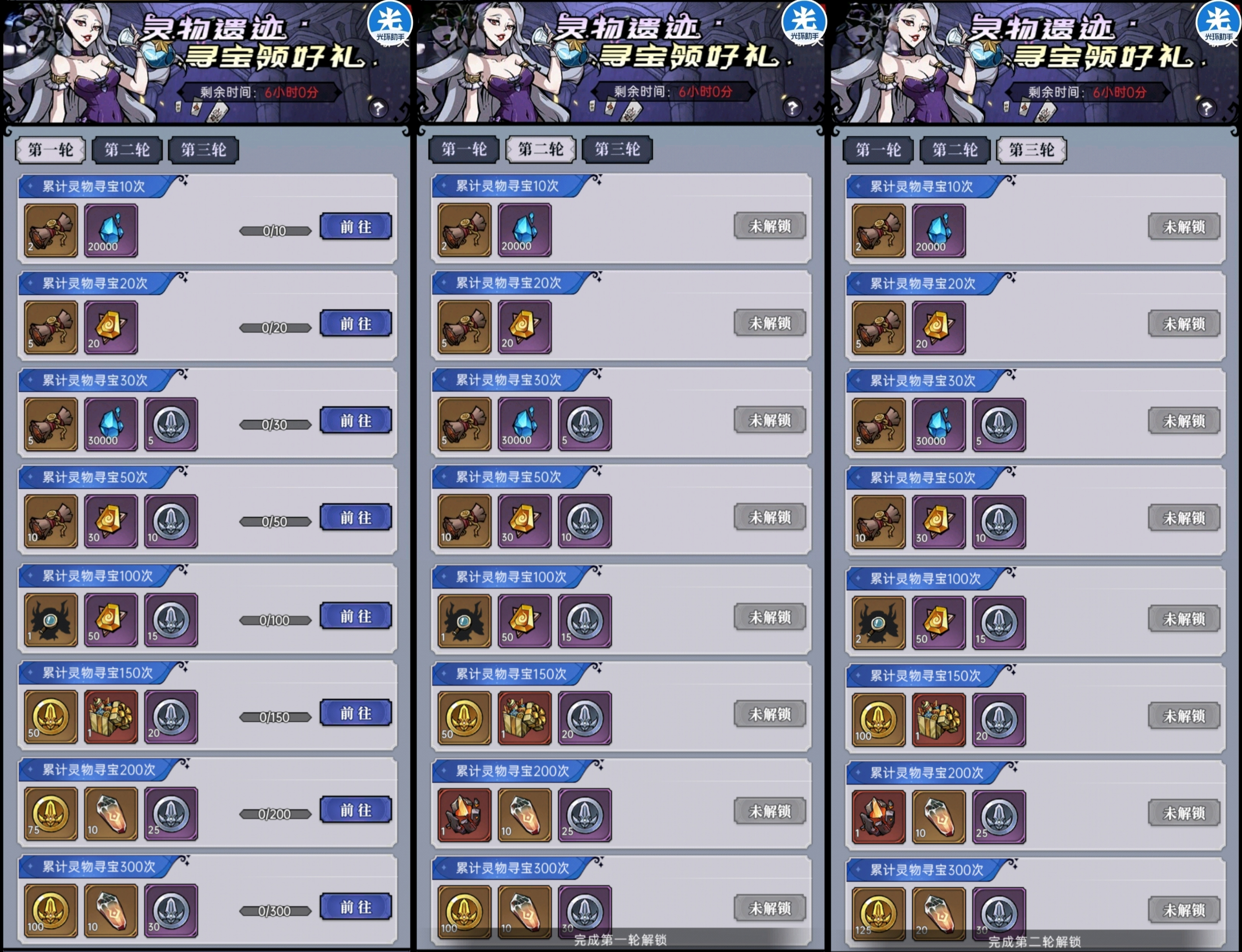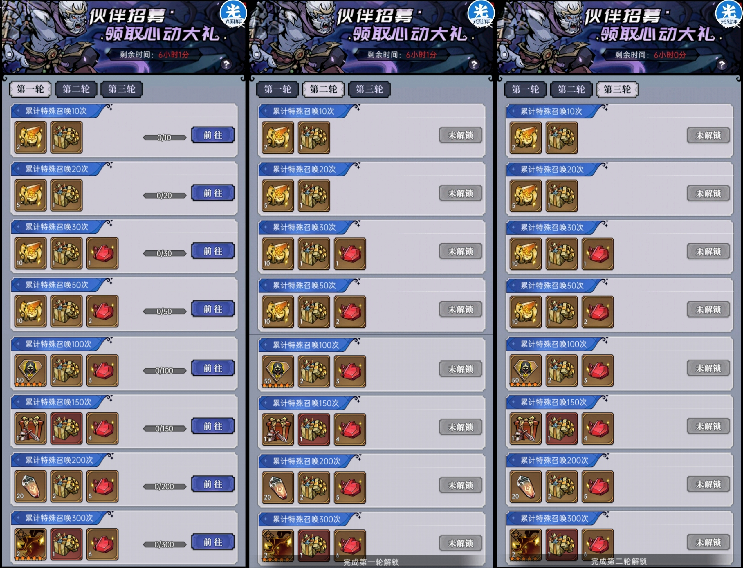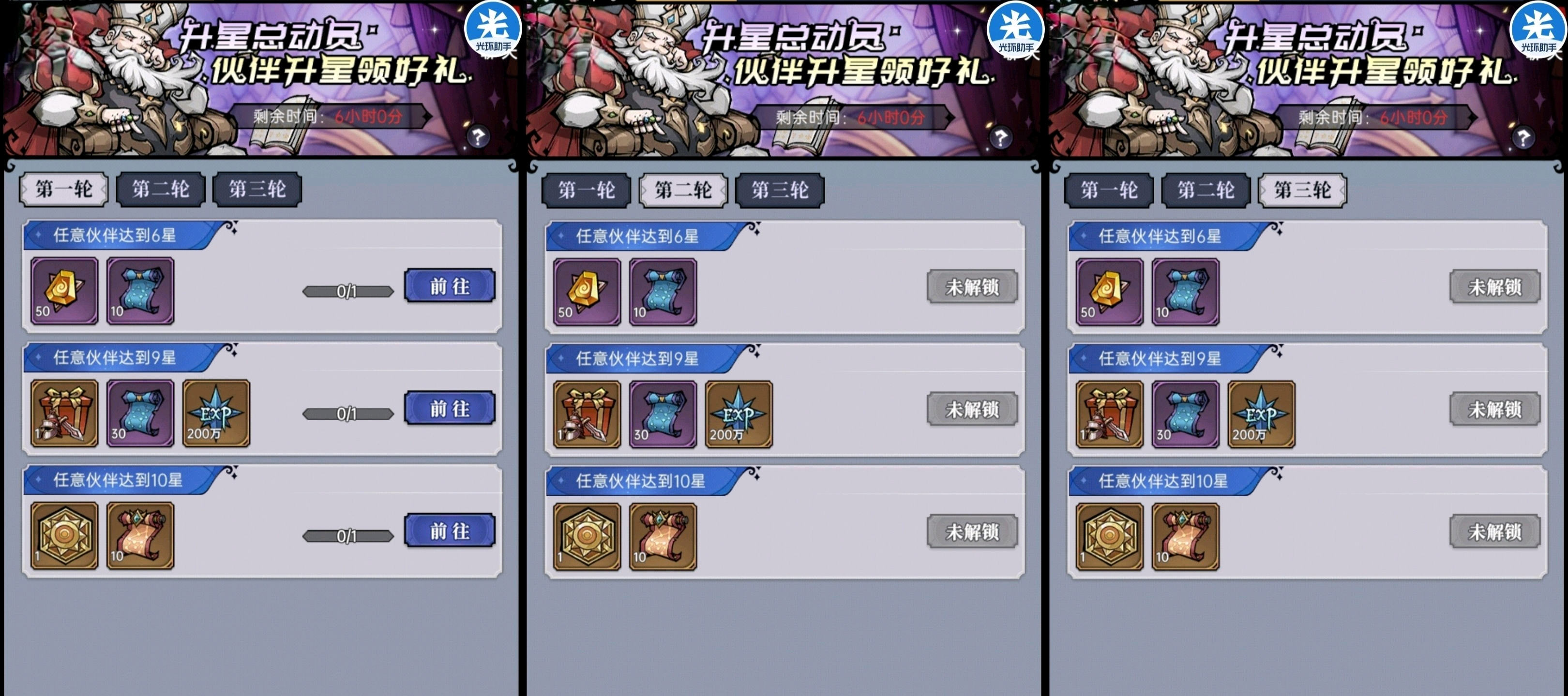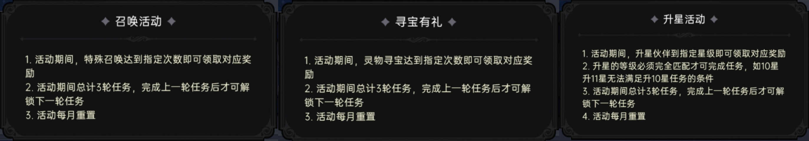 (召唤活动、寻宝有礼、升星活动按阶段完成)