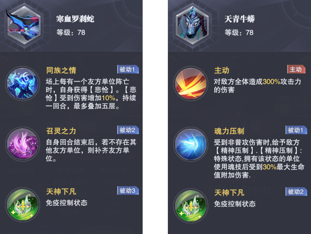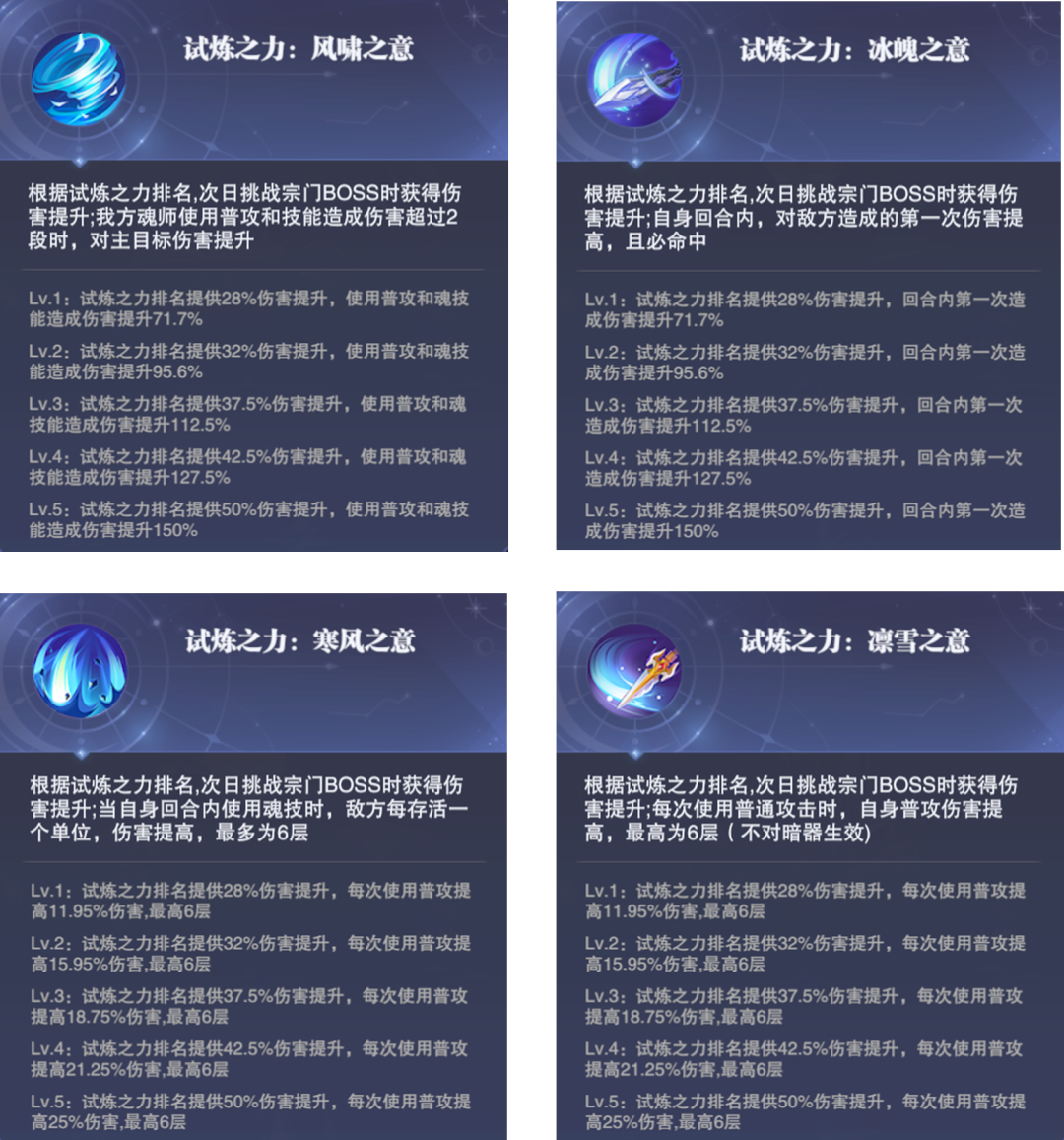 第五天boss天青牛蟒:受到非普攻伤害后会给我方魂师施加【精神压制】效果,持续全场,拥有此状态的我方魂师在使用技能后会受到30%最大生命值的附加伤害
