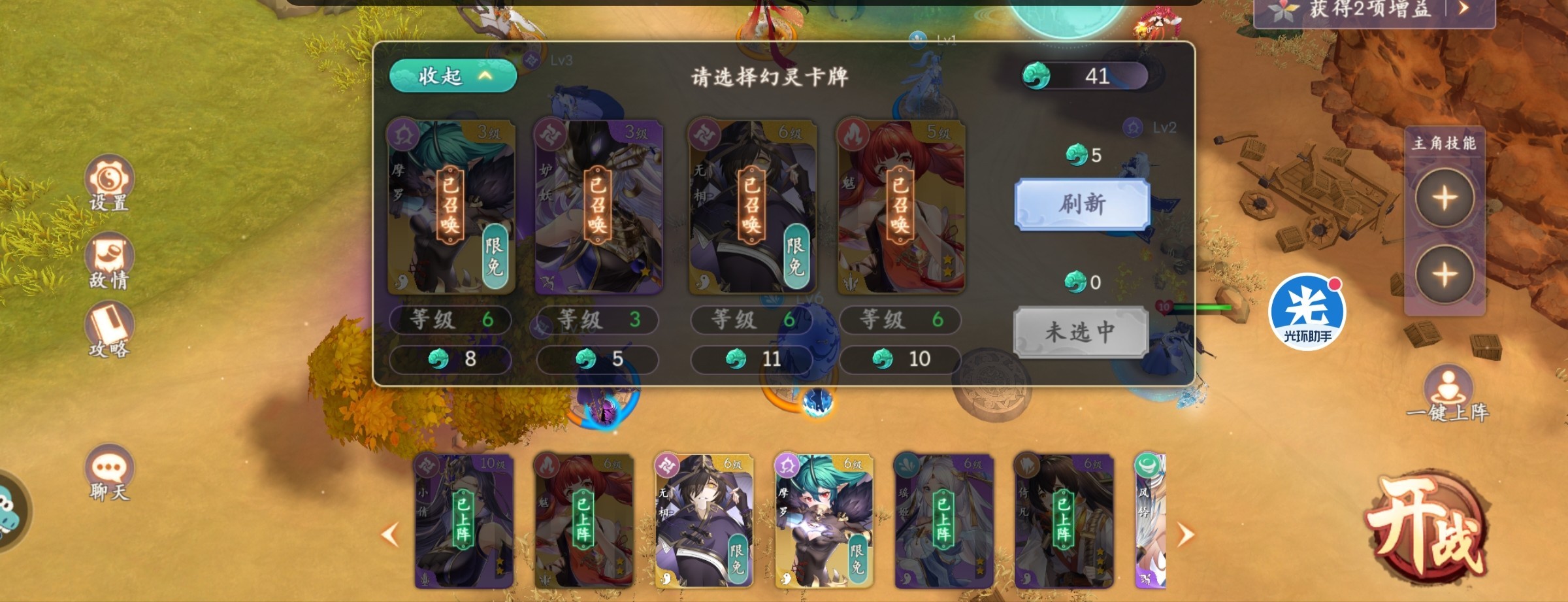 首选开局会随机给你4个幻灵。若是不喜欢,可以通过刷新来重新刷新幻灵,来选择。