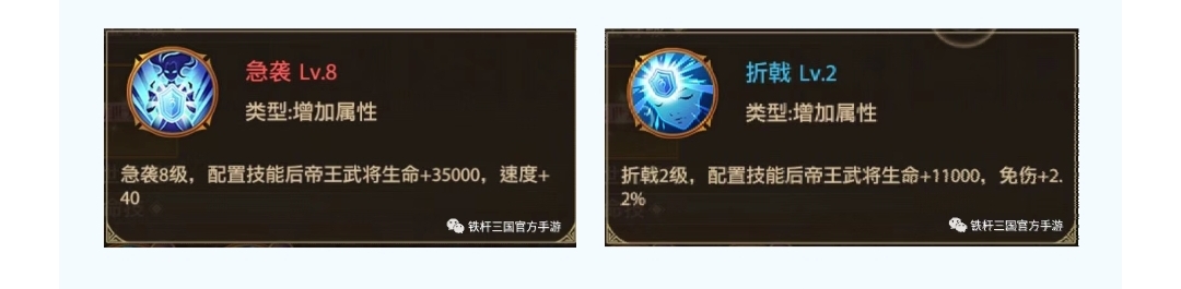 折戟:增加帝王武将生命值与免伤