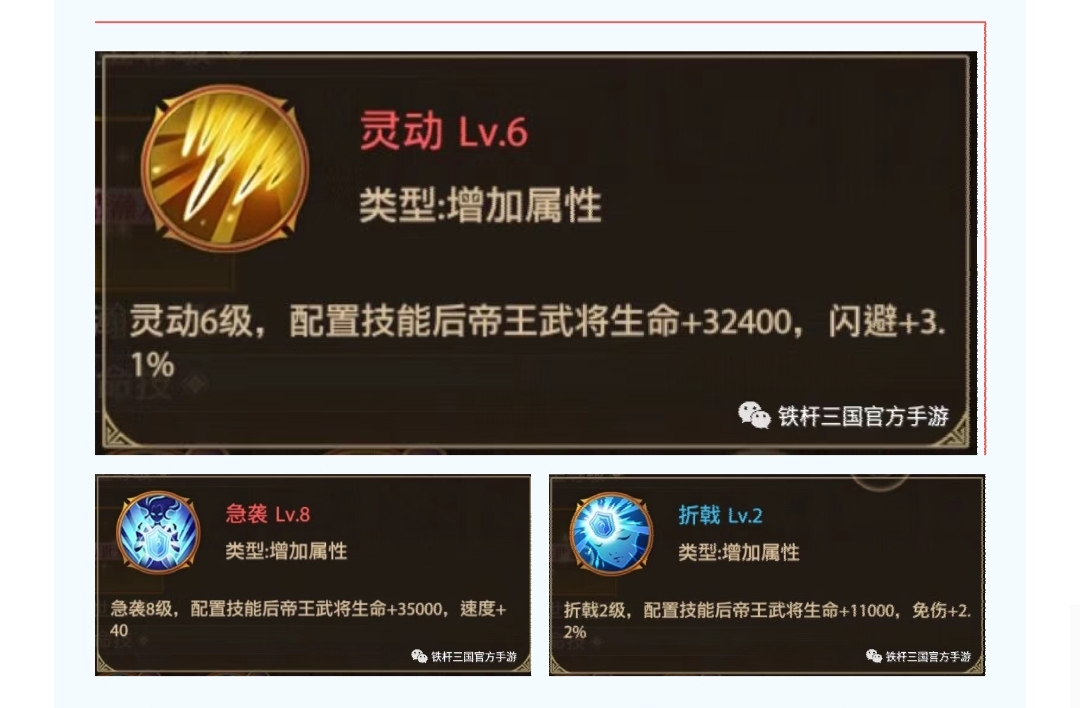 灵动:增加帝王武将生命值与闪避值