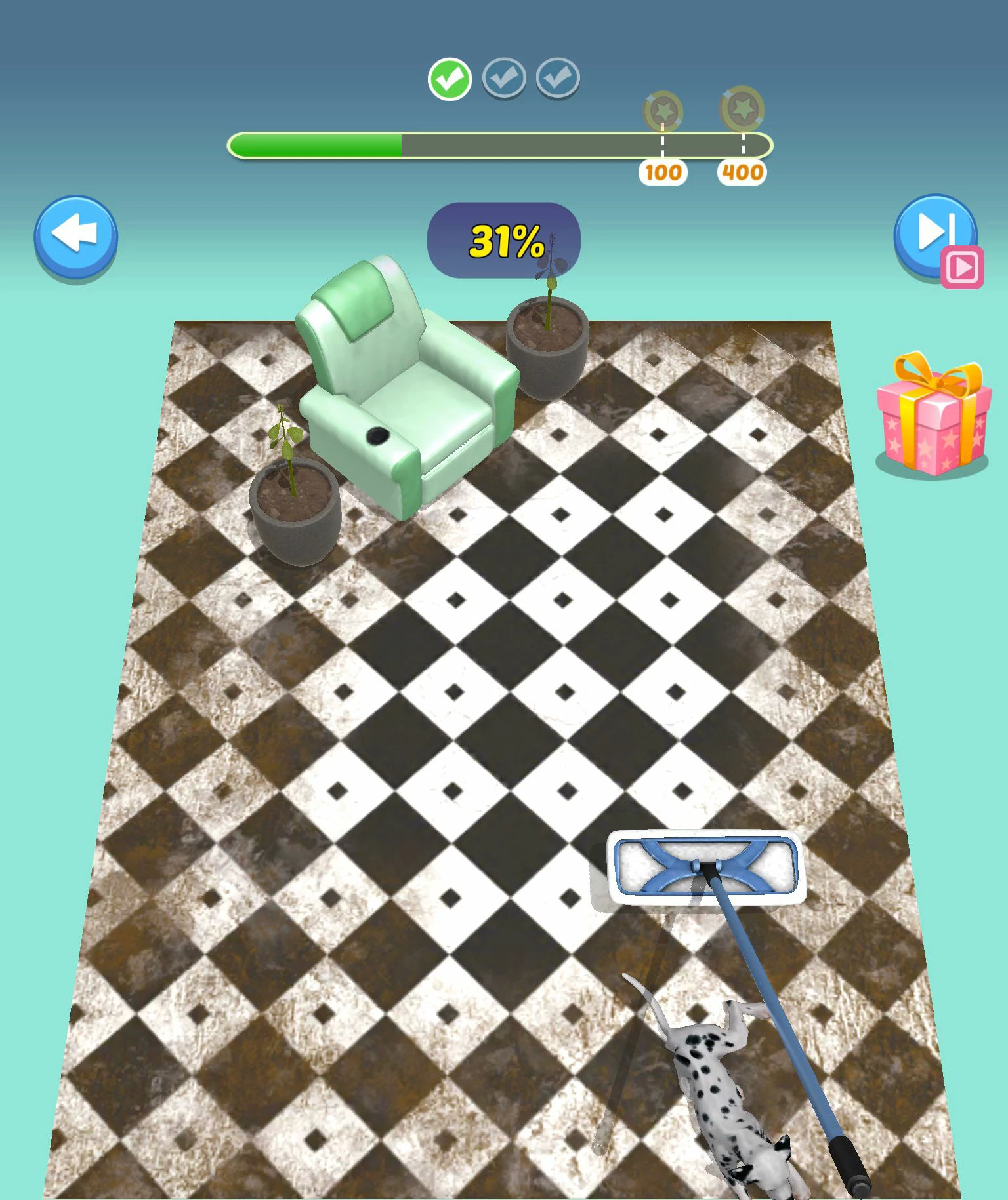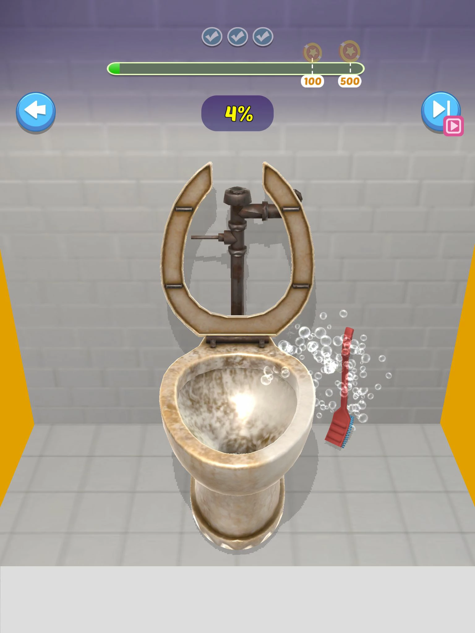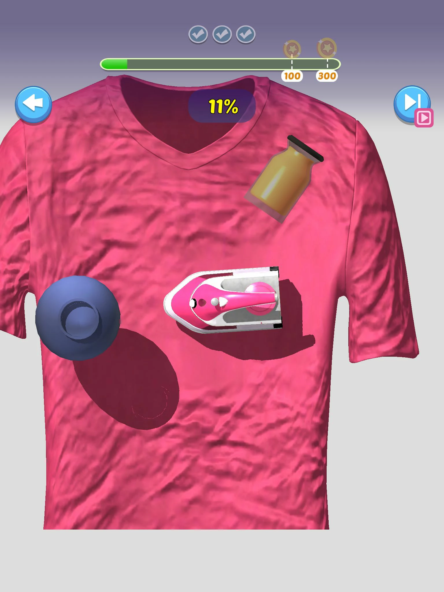 游戏的玩法很简单,玩家将会面临各种各样的家务场景:刷马桶,擦厨房,熨衣服,做早餐……通过完成家务来换取零花钱。虽然需要做的家务各不相同,但操作却非常统一,拖动工具在屏幕上不断滑动,完成要求即可通关。