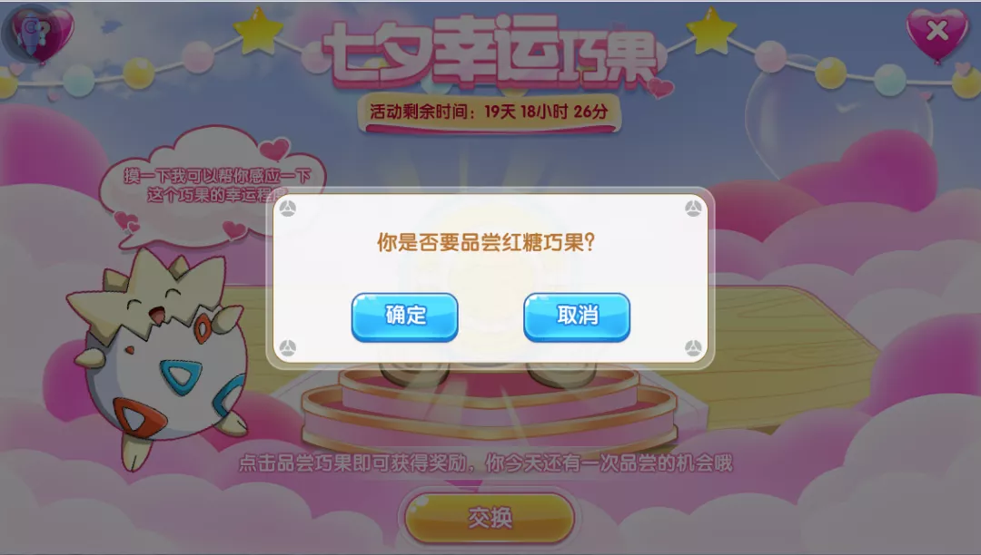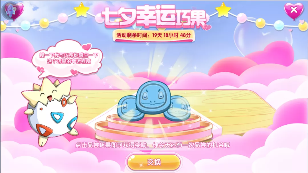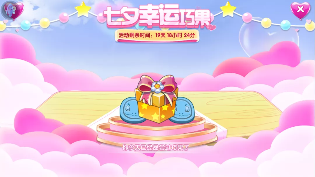 当你确认好当前巧果是你要想的,点击巧果位置可以品尝对应的巧果,吃完以后就可以看到藏着后面的礼包了。另外,每天只能吃一次巧果,领一次奖励,要不波克比做的巧果可能不够分了,到时候波克比可是会难过的哭出来,所以为了避免这种情况,亲爱的玩家们不要贪心哦。
