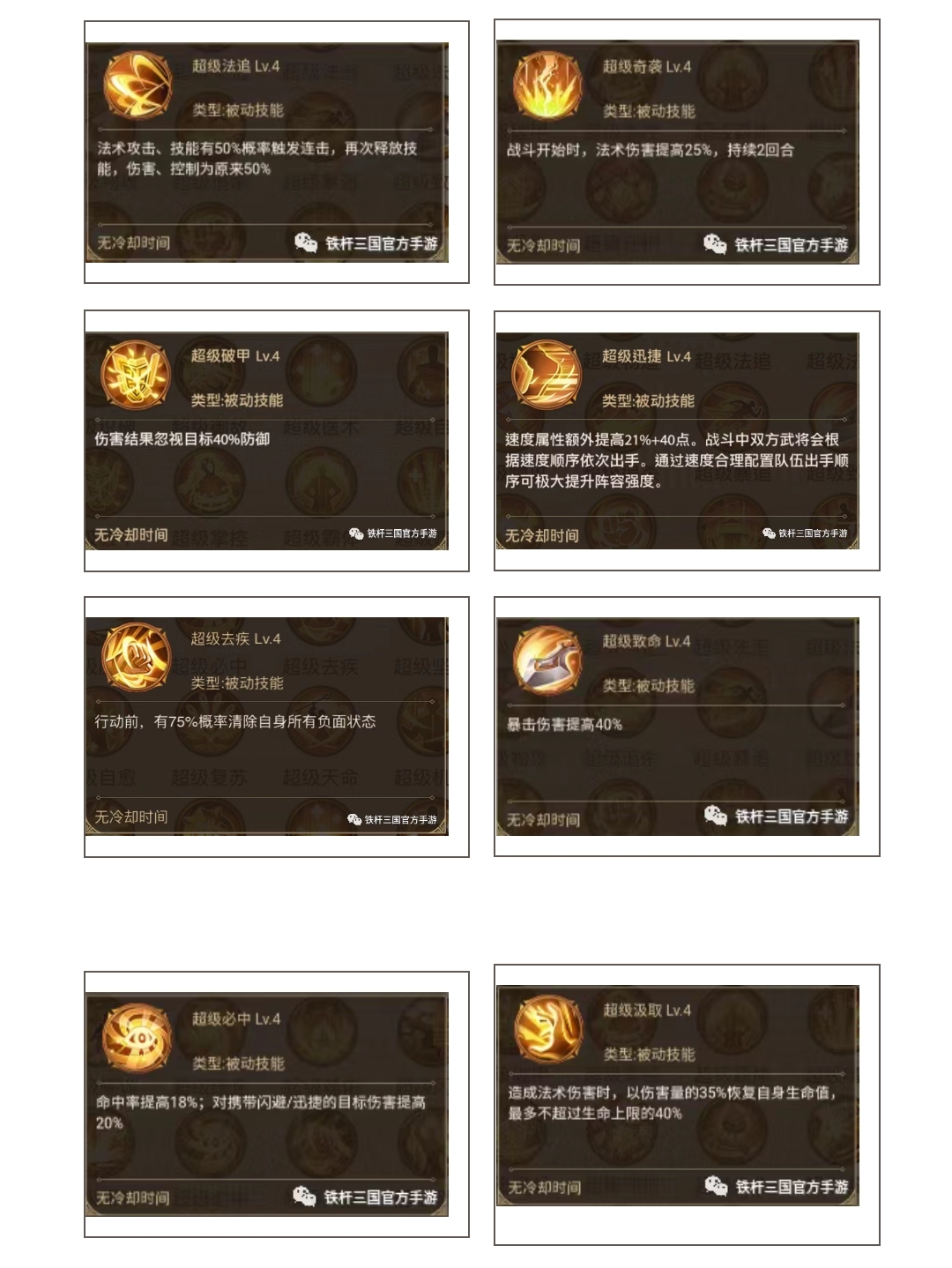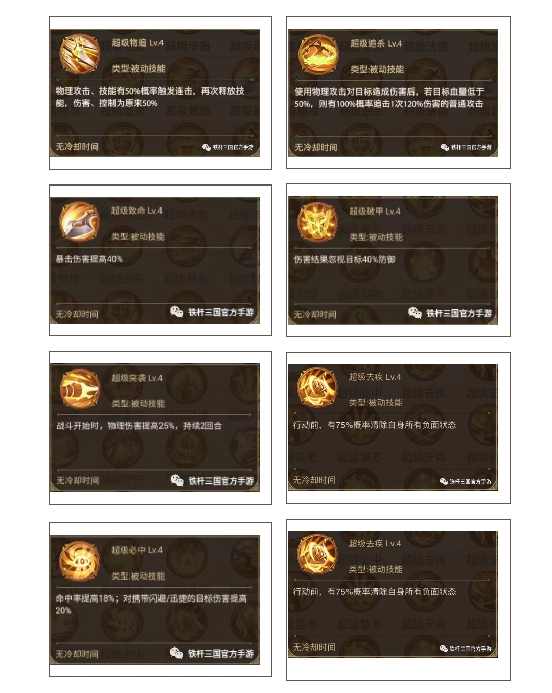将印战法技能推荐:迅捷,物追,追杀,致命,破甲,突袭,去疾,必中。