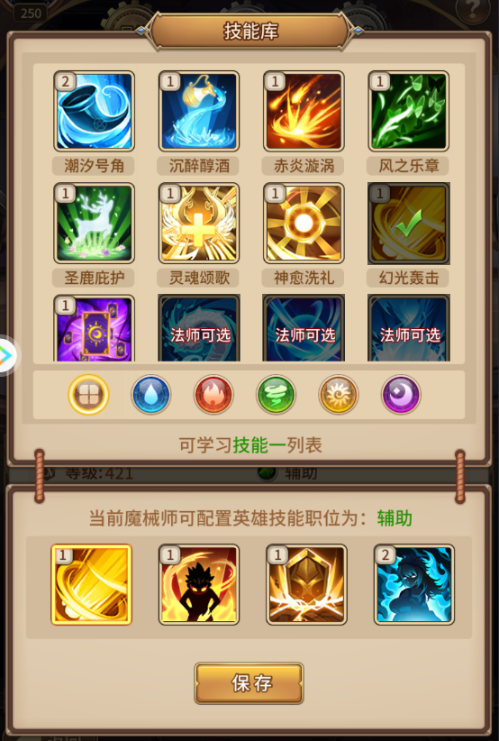 ◆ 研究技能、升级技能会带来全英雄属性加成,研究不同职业的2、3级技能还会带来对应职业属性加成;