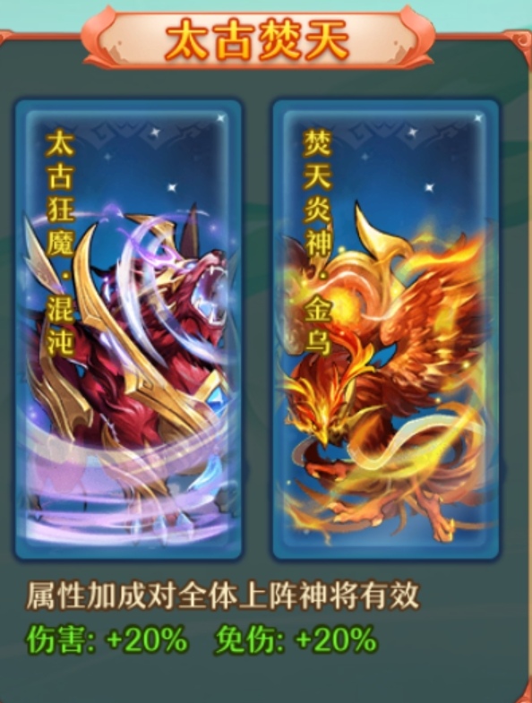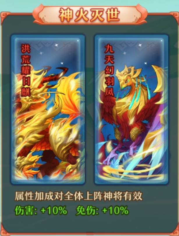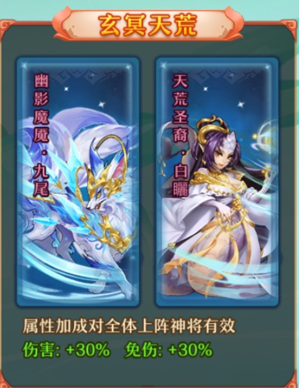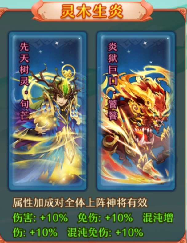 别的神将,前三个上阵橙色仙灵后三个上阵紫色仙灵。