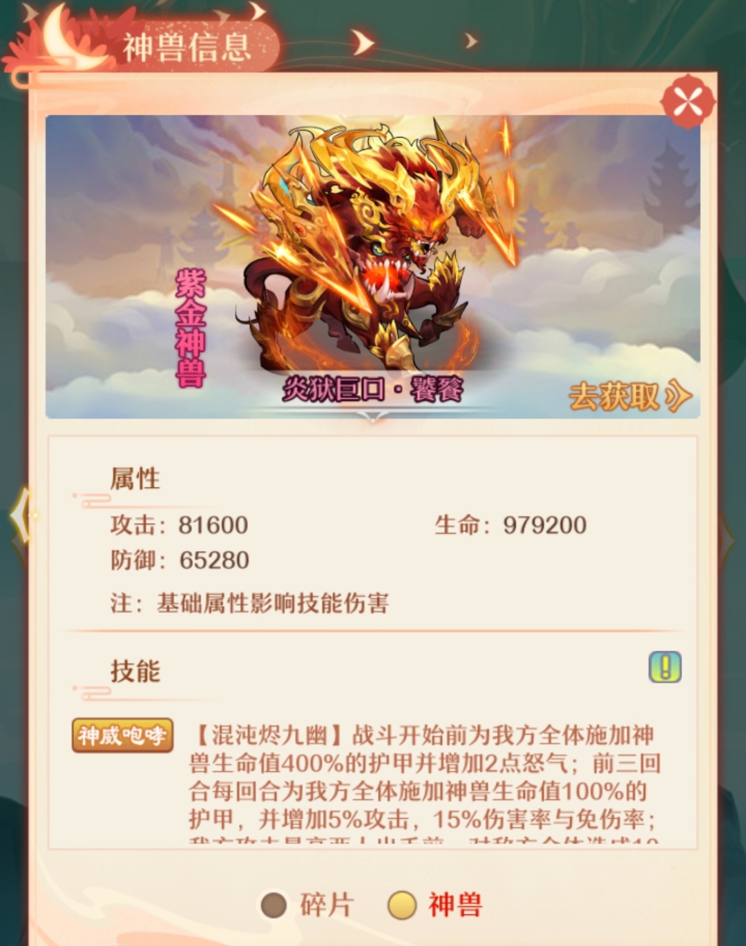 我们在须拟灵域里面打满的话,应该就可以获得一个金色神兽。