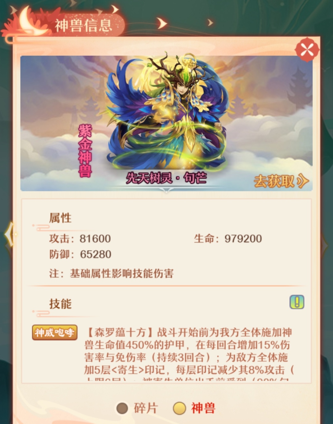 应龙不强吗?我选的应龙一共2亿战力能打过句芒5亿战力