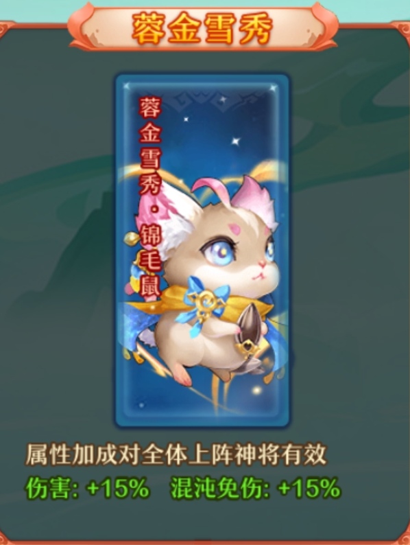 赤金法宝任选箱,紫金神将,紫金法宝,还有金色神兽,黄天令之类的。