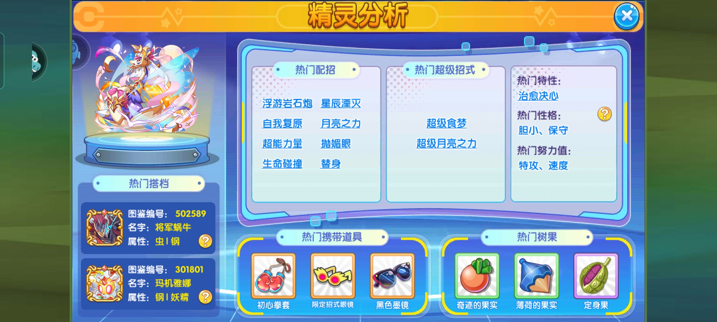 美梦神有妖精、超能两个本系输出技能,加上浮游岩石炮享受属性一致加成,就有三个输出技能来触发初心拳套的加伤,相当不错。