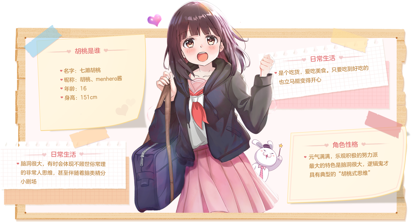 胡桃于2021年3月2日《原神》1.3版本上线,也是在这个时间段之后你能在百度搜索栏里搜索到胡桃的绝大多数内容都是有关于她的一些攻略,或者是二创。