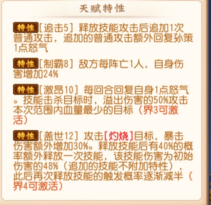 说了这么多先带大家看一下孙策突金的特性