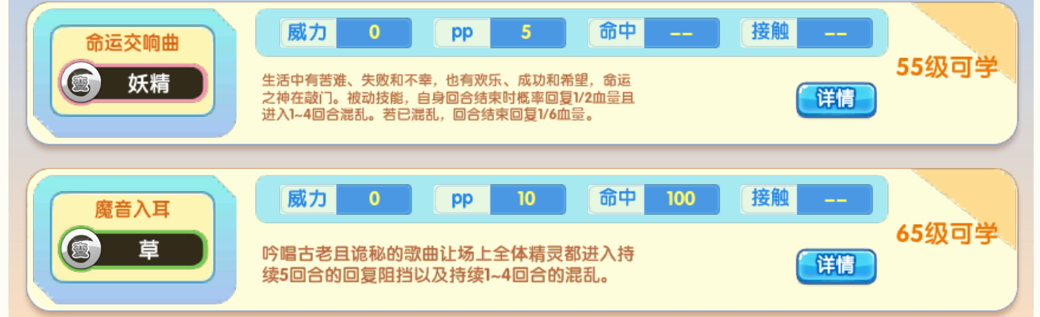 精灵配置说明:由于这个精灵非常的特殊,本身没有任何的劝退效果技能只能使用咒语,用自损1000伤敌800的方法,还有一种就是只能赌对方没有替身,然后用寄生种子和魔音入耳,这两个技能进行消耗,魔音入耳这个技能的效果是让双方陷入回复阻挡和混乱状态,当然了,你自己下场之后再上来,你自己的这两种状态就没了,当然了,对方如果也这样进行操作的话,状态也会消失,看起来挺不错的,但实际上并没有什么用。