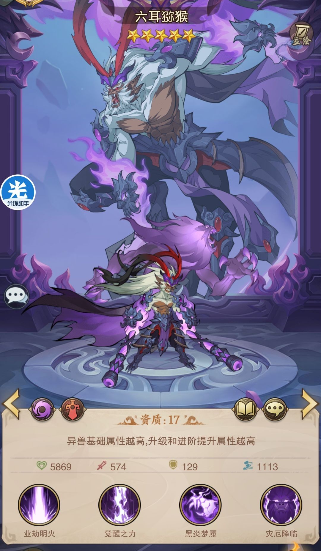 牛魔王:新出的17资质十狱异兽,全游戏第一位混伤异兽,其被动的增防和加攻以及大招的混伤机制,配合六耳猕猴可以第二回合就一拳秒了敌方前排,从而乱杀后排