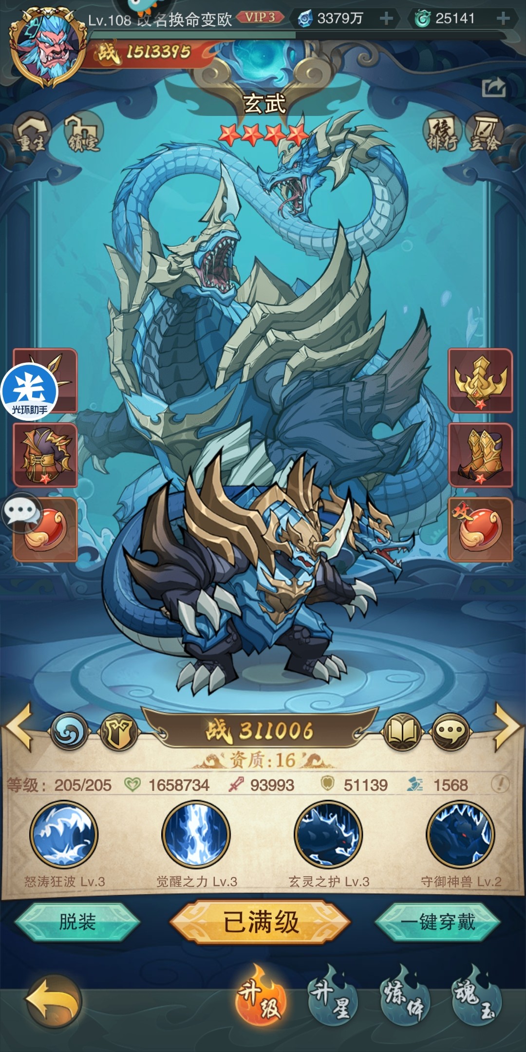 玄武一速且要压血,而且速度要有多快堆多快,要的是他二回合先手开盾保护,地藏和曦和速度不要堆太快,只要比六耳和牛魔快一点即可,烛龙是理想搭配,没有烛龙的也可以用应龙,应龙的控制及驱散也是非常适合平推的