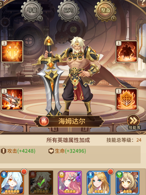 技能搭配:海姆达尔1+海姆达尔2+熊猫3+凤凰4