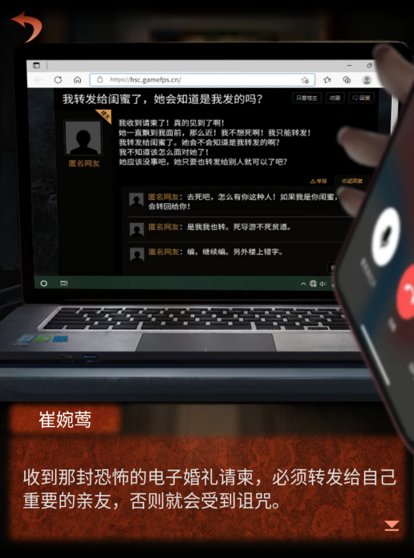 本次的故事将在“益昌镇”书写。你本想随手删掉那一封要求你转发亲友,否则将会遭受诅咒的“垃圾短信”,定睛一看却发现“电子婚柬”上的新娘赫然写着自己的名字:崔婉莺~