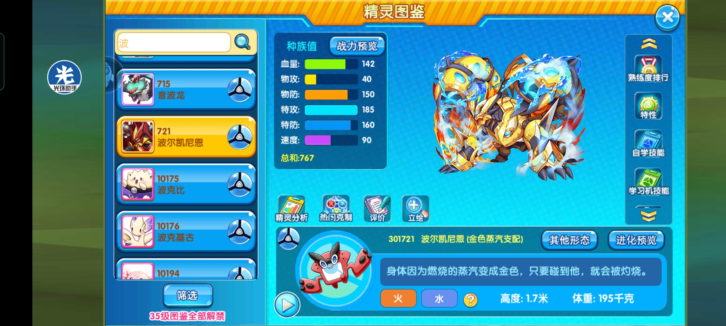 种族属性:新的黄金之门水火兽,不是单纯的追求速度和伤害,而是一种类似于坦克的姿态。142点的生命值,150的物理防御,160的防御,还有20%的伤害减免,这说明他的黄金拱门水火兽的肉度很高。185的特攻,特性增加50%的攻击力,攻击力也很强。他的移动速度看起来很慢,但是凭借着特殊的技能,他的攻击速度还是很快的。