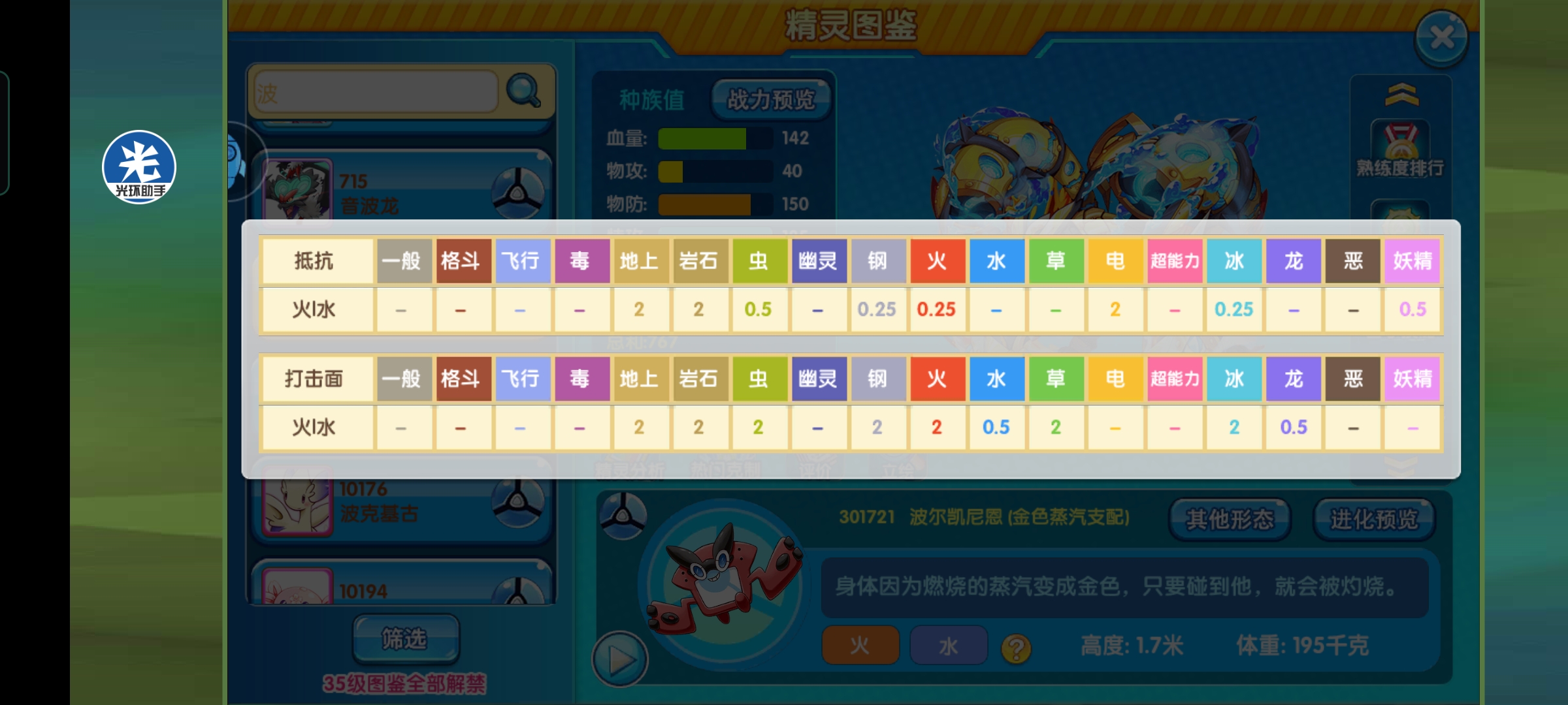 水火兽的属性是火与水,是当前唯一的元素组合。在攻击方面,水和火的组合非常出色,几乎每一次攻击都能给对手造成很大的伤害,只有两个盲点,一个是水和龙,一个是水,但是新技能让它也不怕,论抗性,它有三大弱点,分别是地、岩、电。