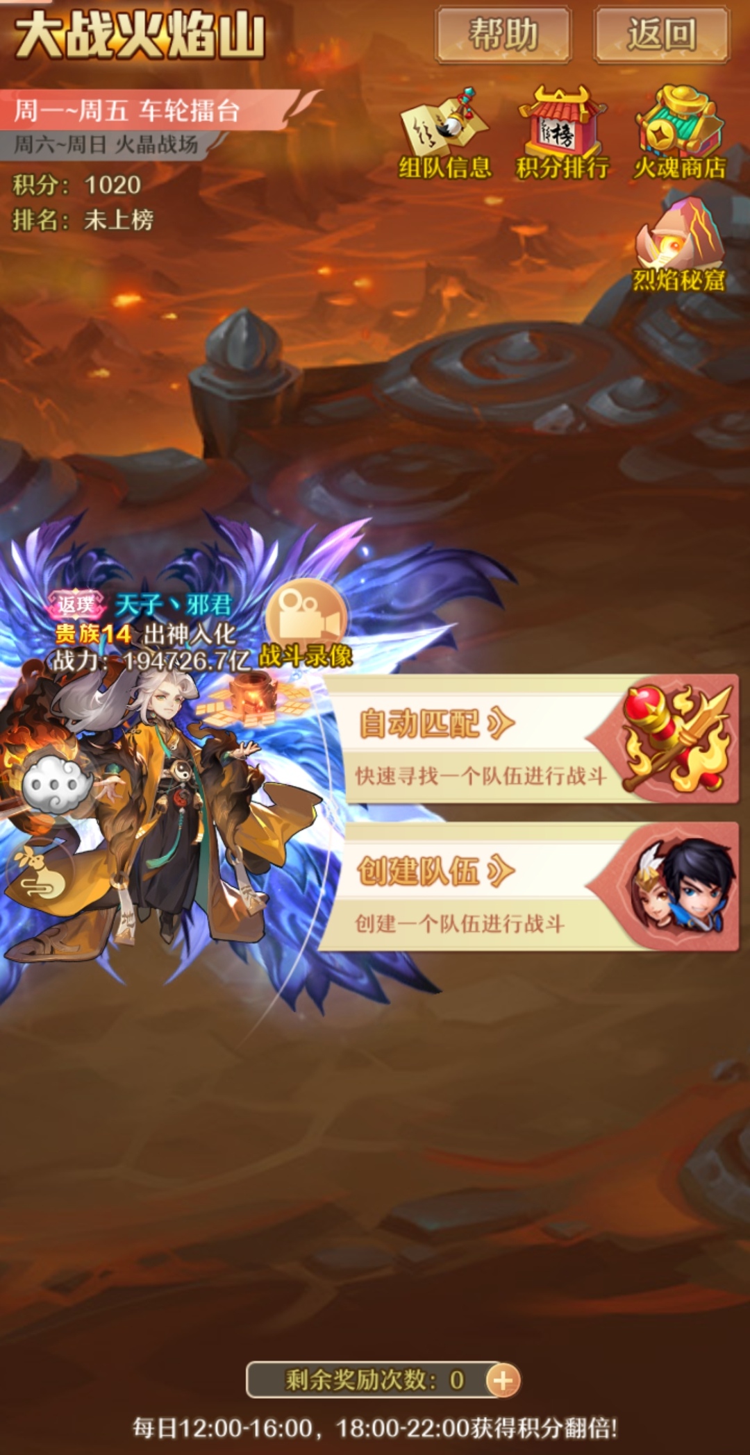 每次攻打胜利都将获得积分和符灵奖励,自身战力越高获得的奖励数量越多。
