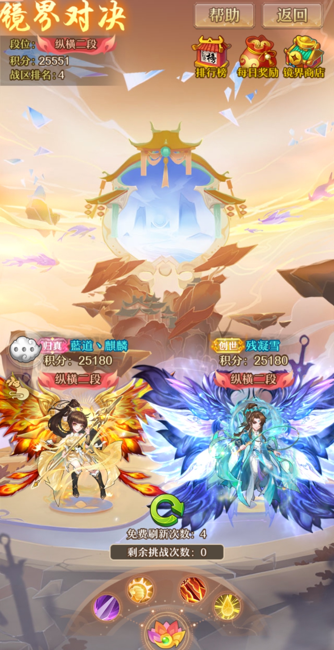 挑战胜利可获得积分与神镜灵元,