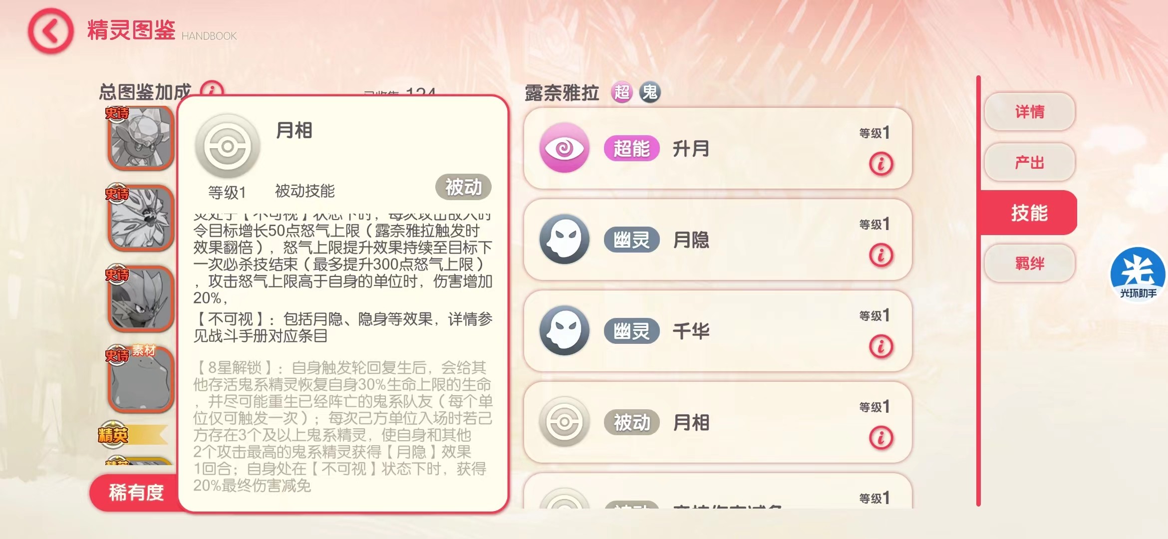 这个被动真是鬼队崛起的核心,先是复活(不限个数),时拉比哭晕!之前靠电猫幻影及时拉比叶子保命,队伍里还能有我时拉比一个位子,现在玛夏多跟时拉比真是再也不见。然后是入场隐身,这机制我愿称为“我方鬼系多一轮出手”。