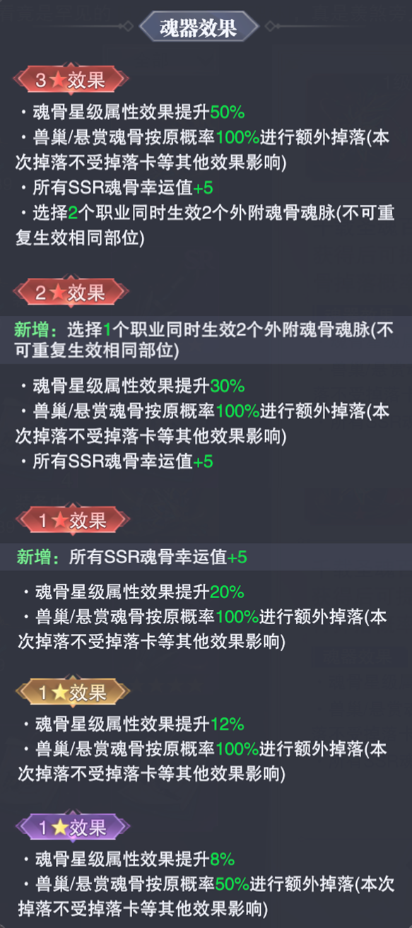 接着我们就来简单的说一下这几个效果的实际影响,首先是魂骨星级属性提升: