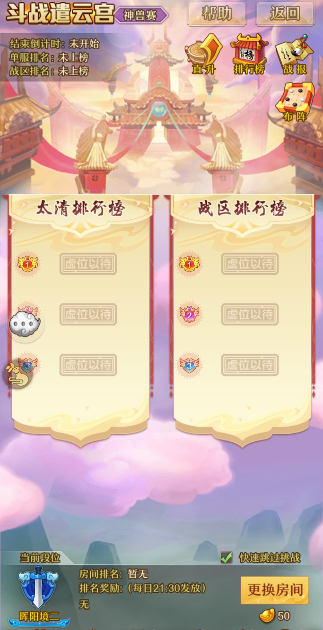 在房间之中争夺排名或者等待每日结算,通过直升都可提升一个段位。