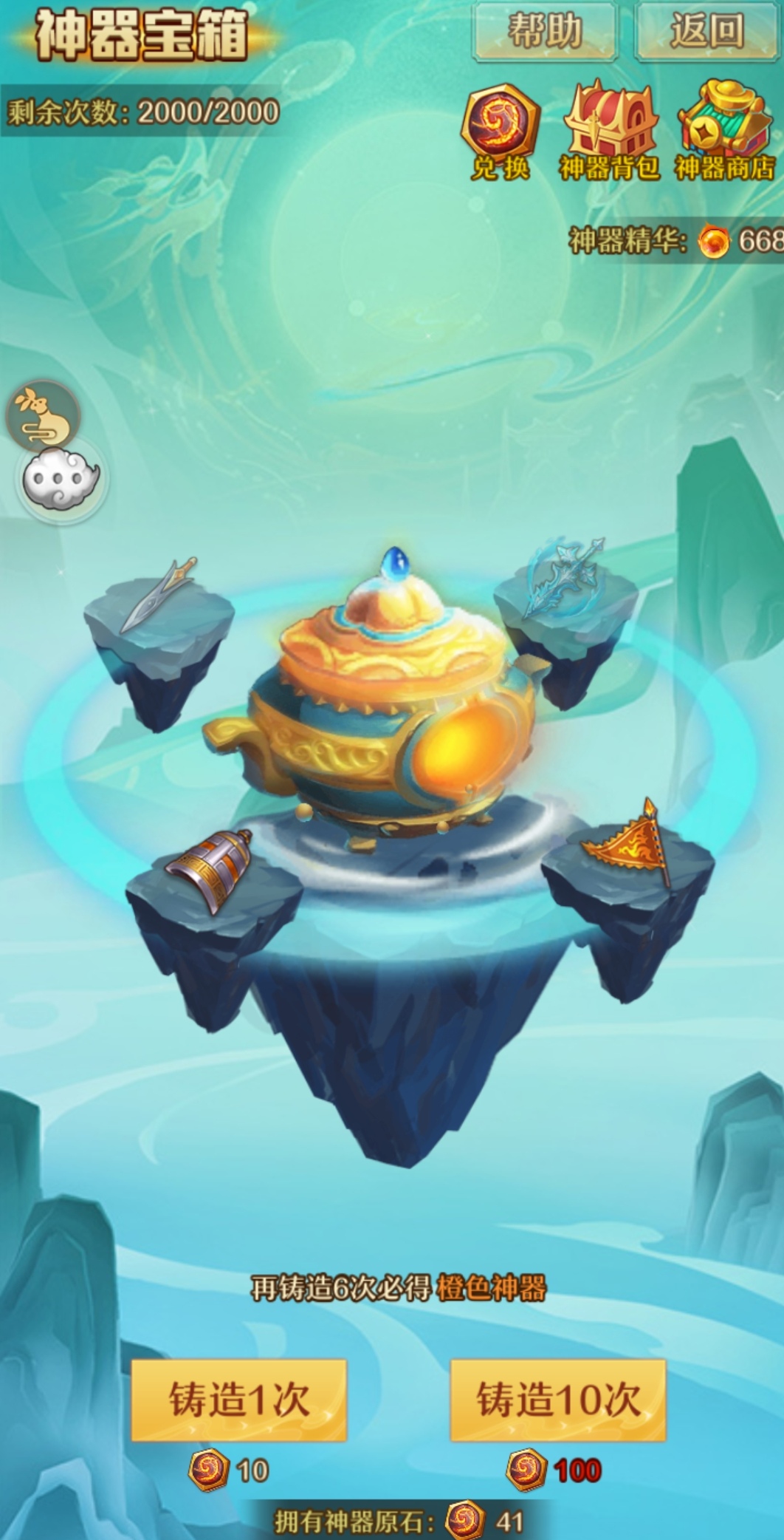 神器宝箱每天可以铸造2000次。