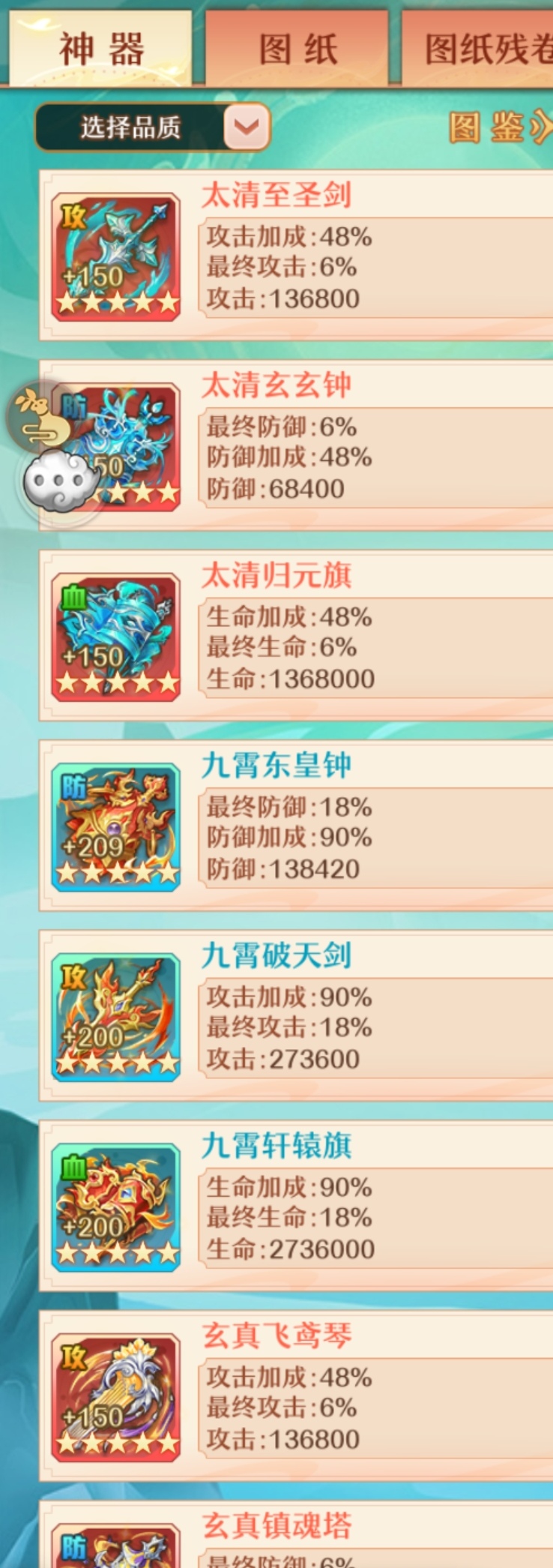 当然如果你有多余的红色神器和橙色神器可以适当分解一些。