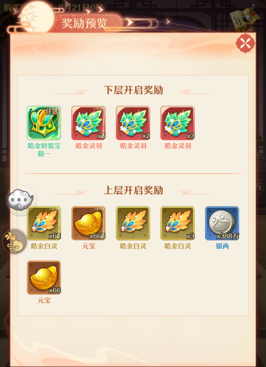 并有概率获得皓金白灵、元宝、银两。