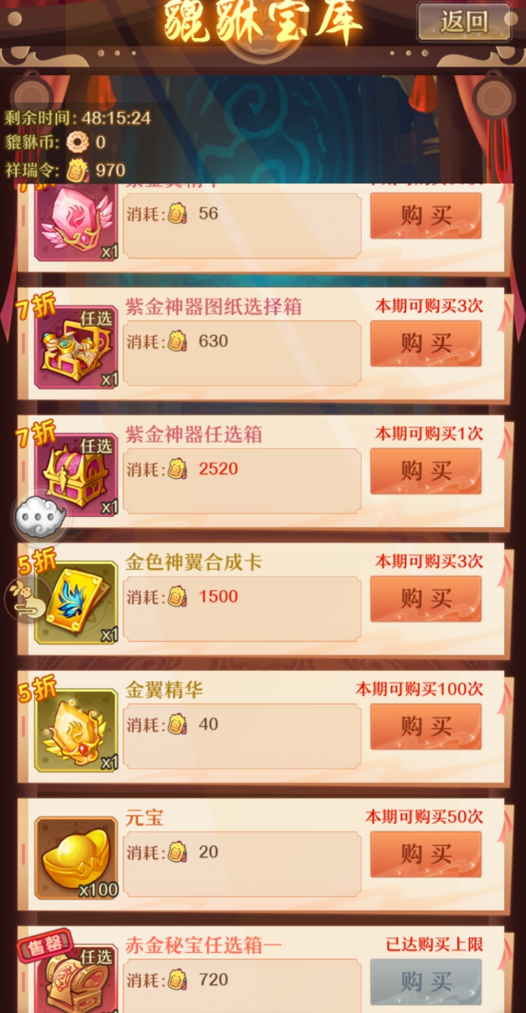 但是兑换赤金秘宝任选箱一还是最大的优选级。