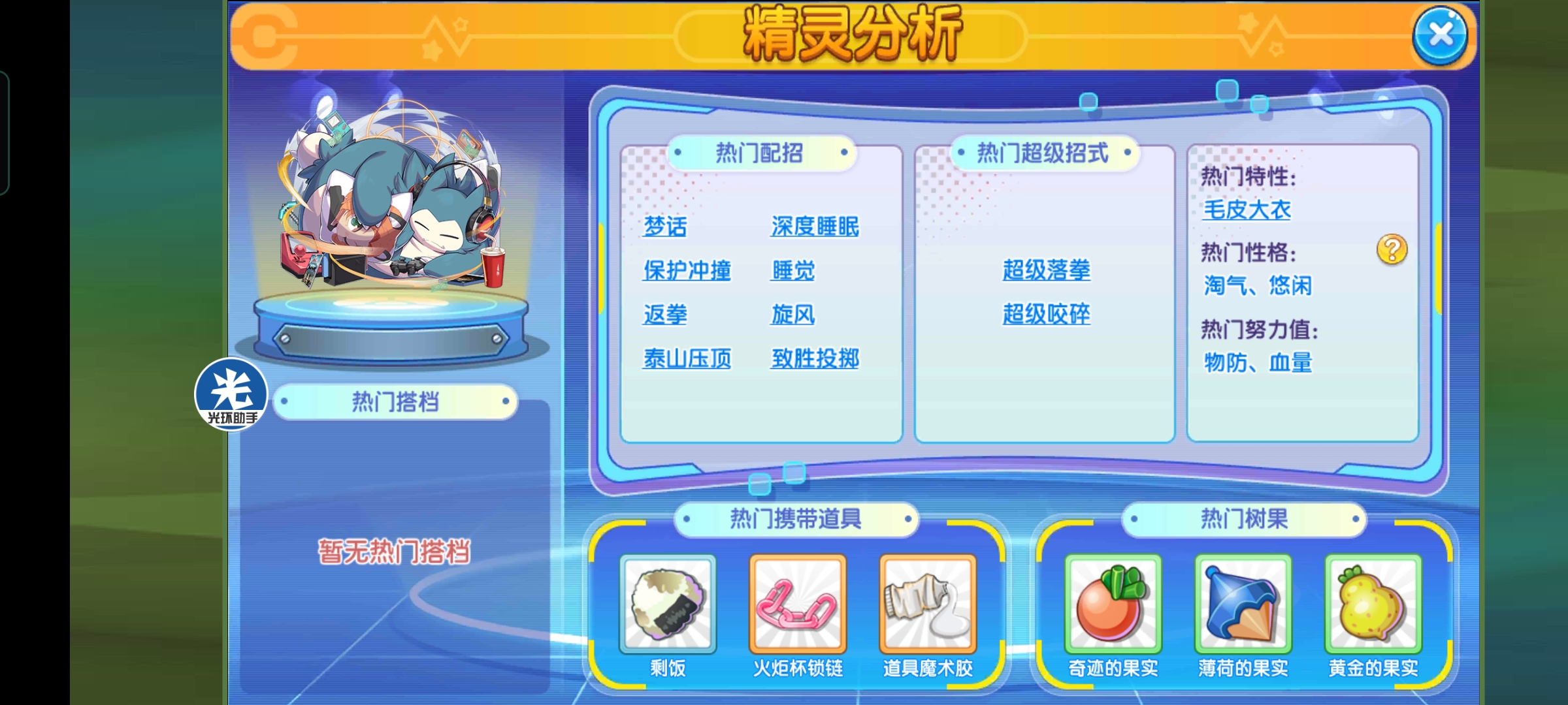 (5)、配招:健美、大力巴掌/珍藏/狂怒撕咬/保护冲撞、梦话、深度睡眠。