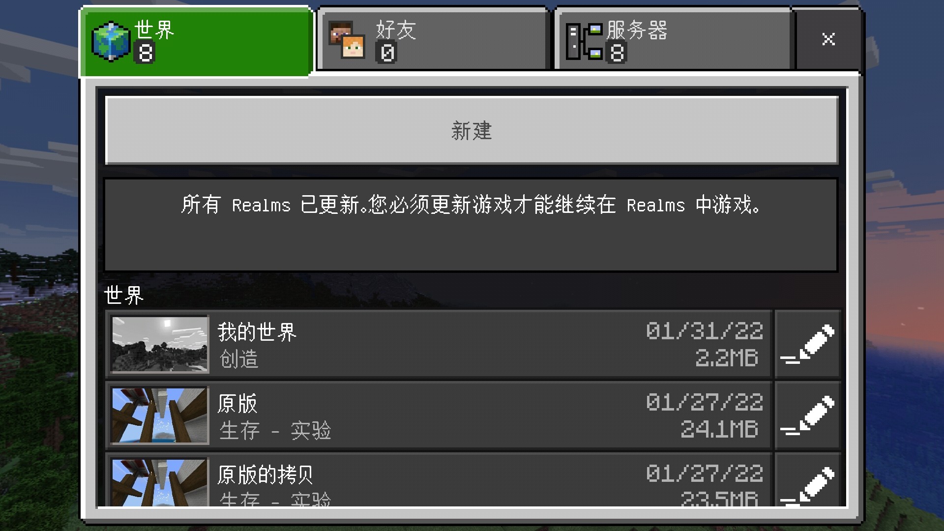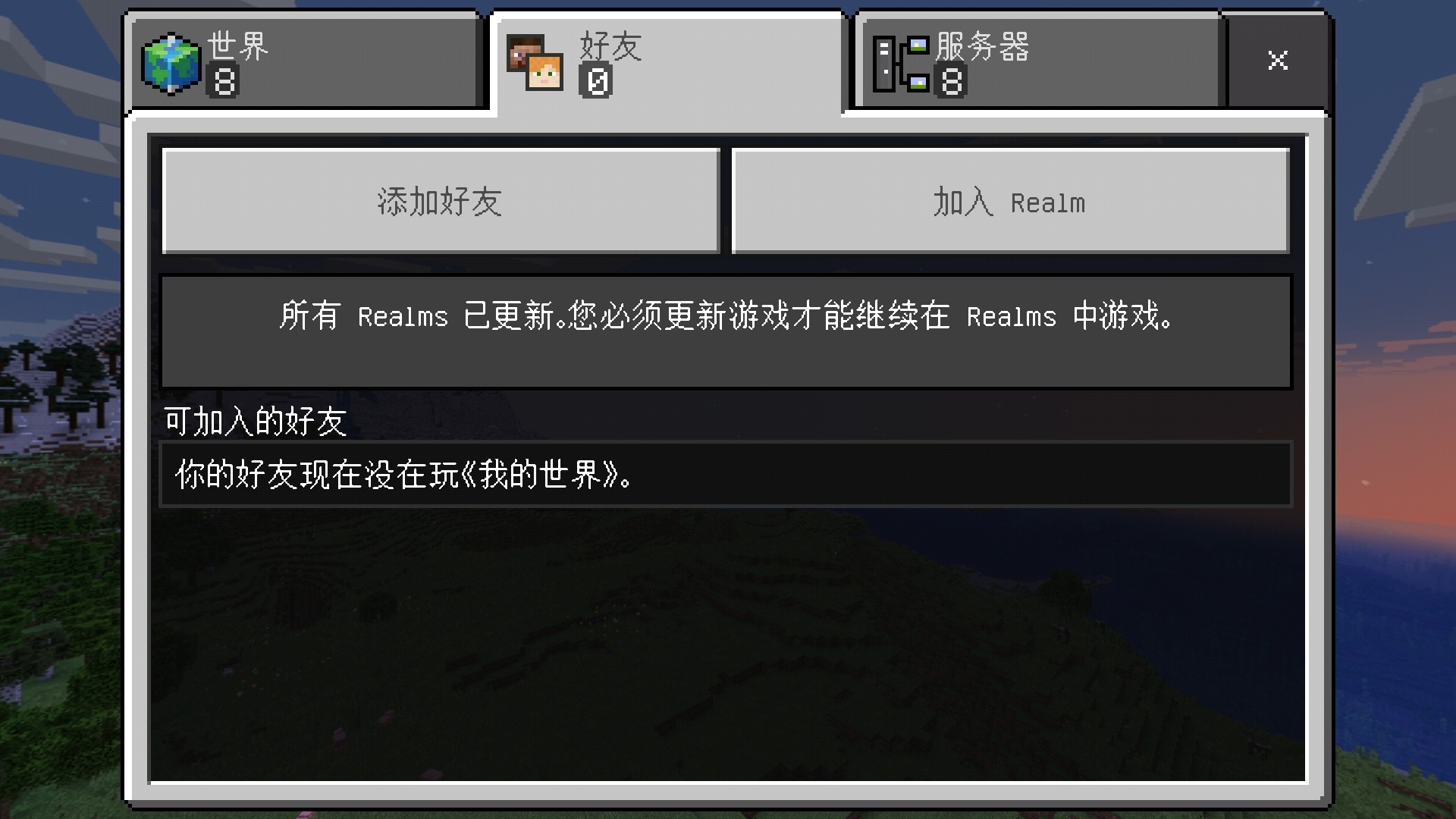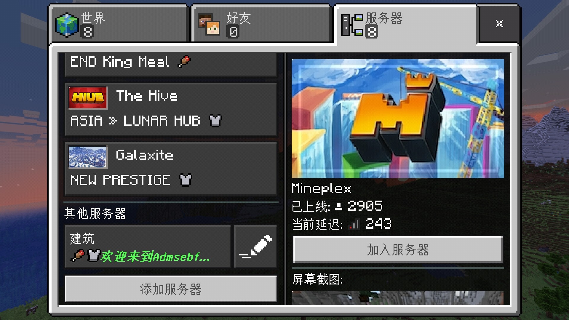 点进去,我们会看到:世界,好友,服务器三大界面。