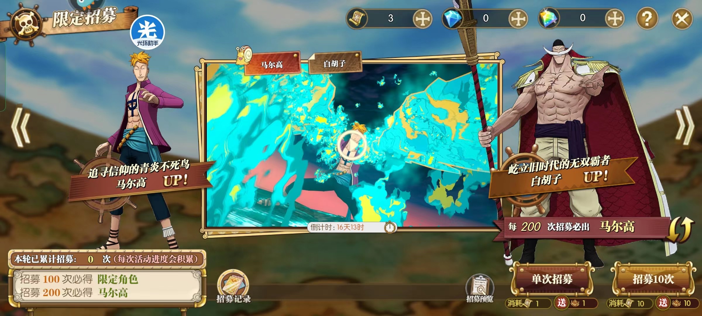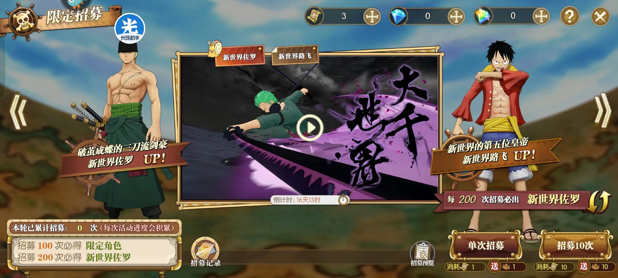 (平民玩家:可以不用抽第二卡池白胡子,抽索隆与自选保底卡池就可以,剩余等14天后的抽新卡)