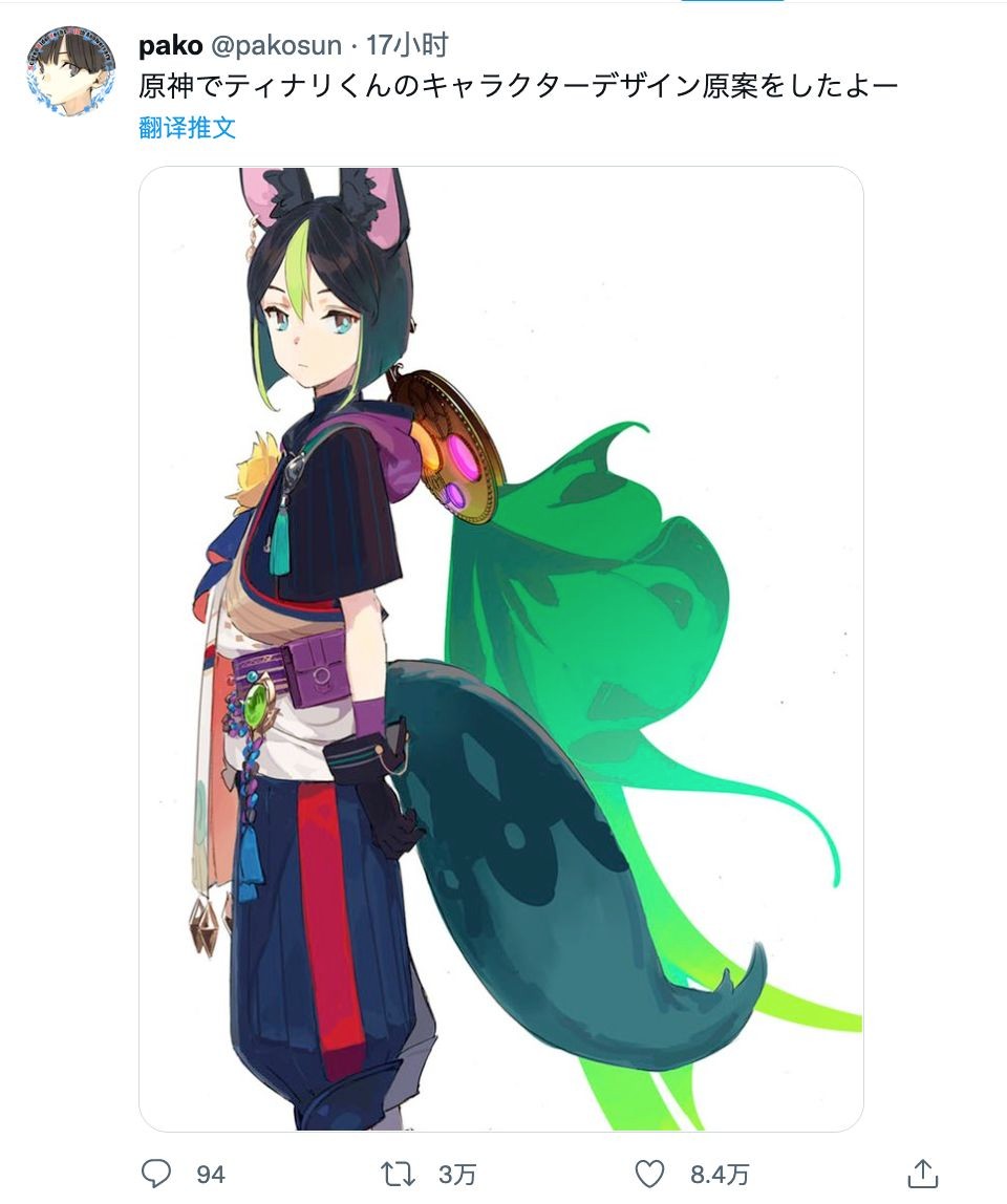 《原神》提纳里的角色原案在推上公开