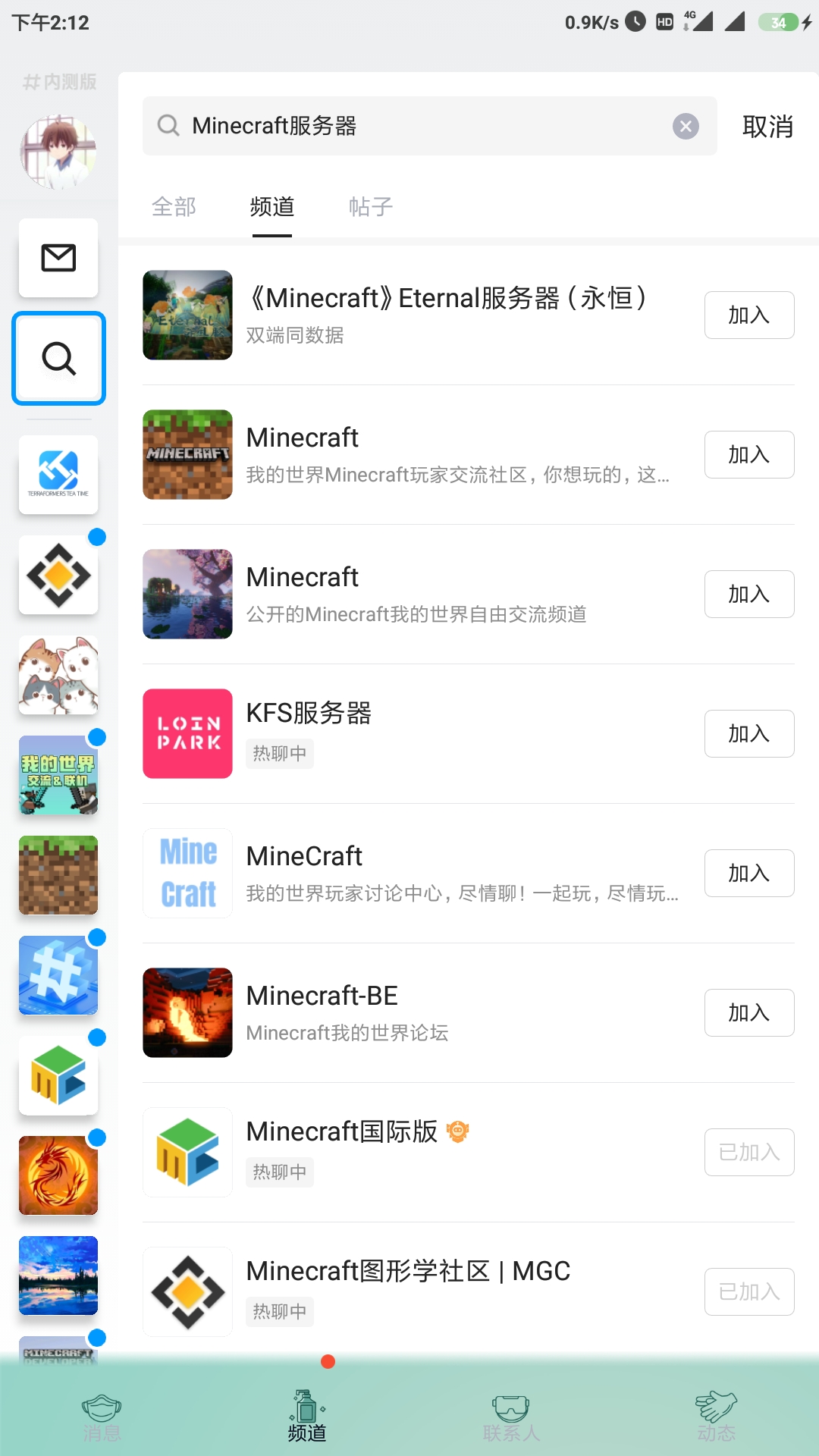 我们可以在各大社交软件进行寻找,只需搜索关键词:我的世界、Minecraft、服务器即可。