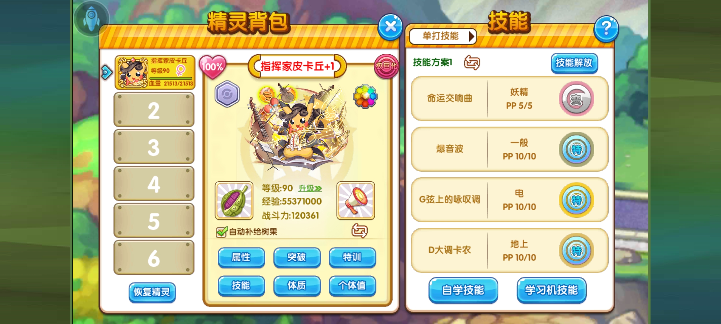 故此指挥家皮卡丘的技能配招为: