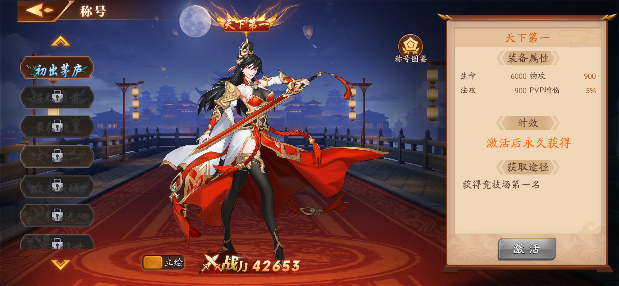 条件:获得竞技场第一名