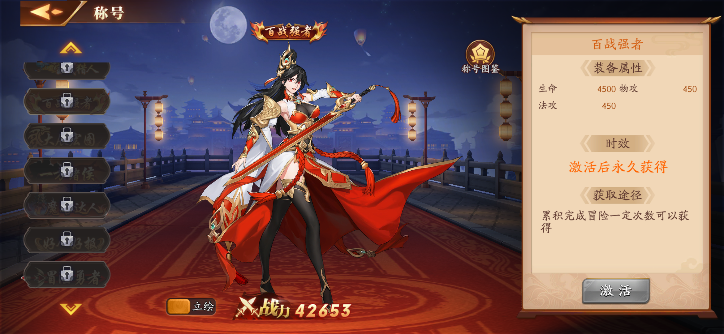 条件:累计完成冒险一定次数可以获得