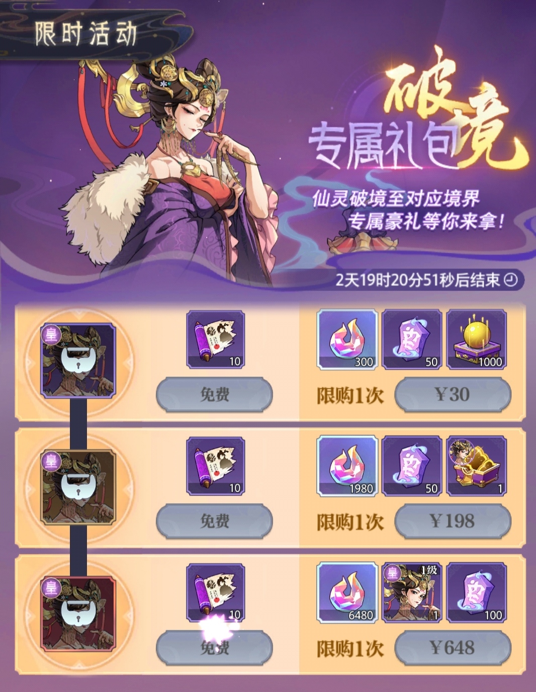 武则天仙灵专属活动就这俩天了,有意向的氪金玩家抓紧了。今天的仙灵人物介绍就到此为止了,祝大家九月果实香香,个个承载吉祥。