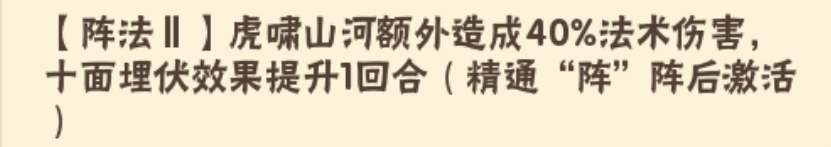 阵法升级至【阵】后可持续两回合,降低龙魂减免效果比较克制张昭阵法对于甄姬减龙魂也有一定效果