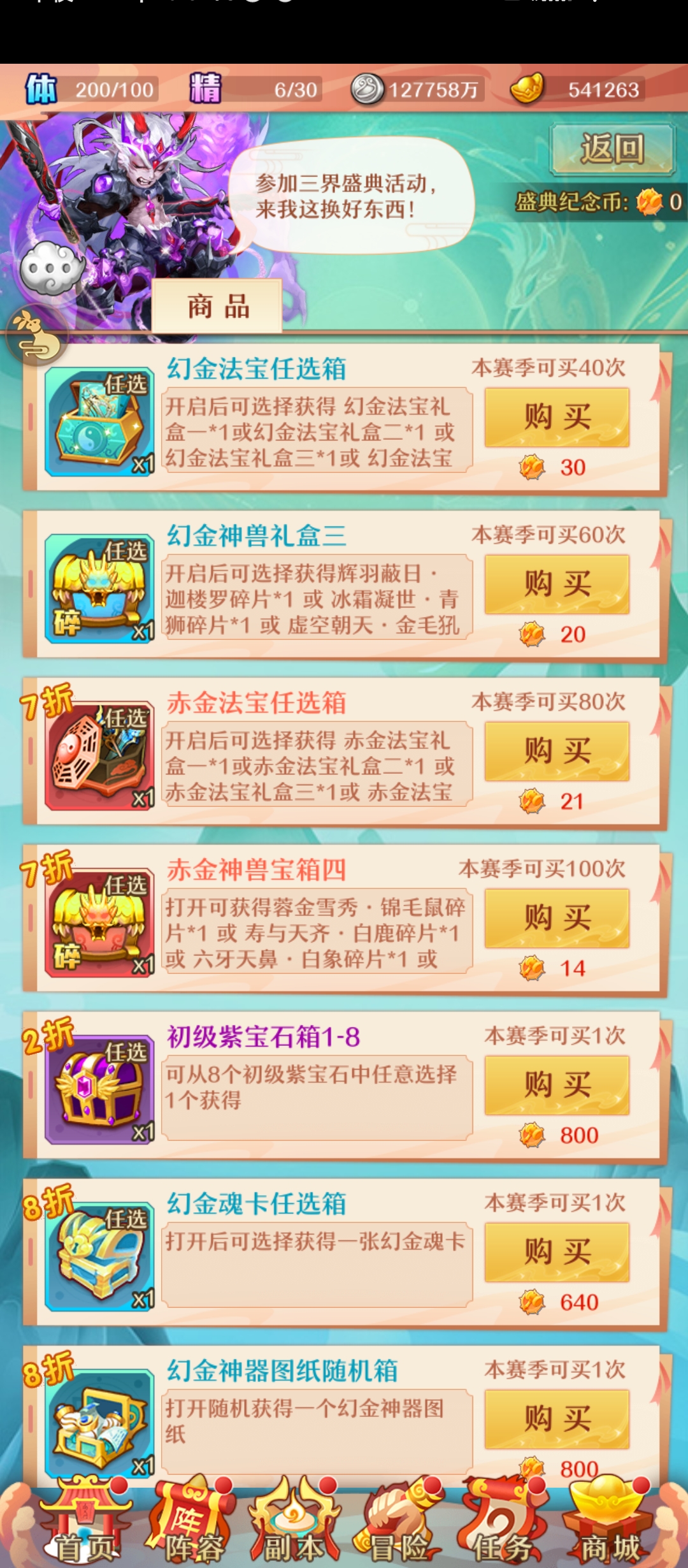 而盛典金币可以在三界珍宝中,兑换珍贵商品。