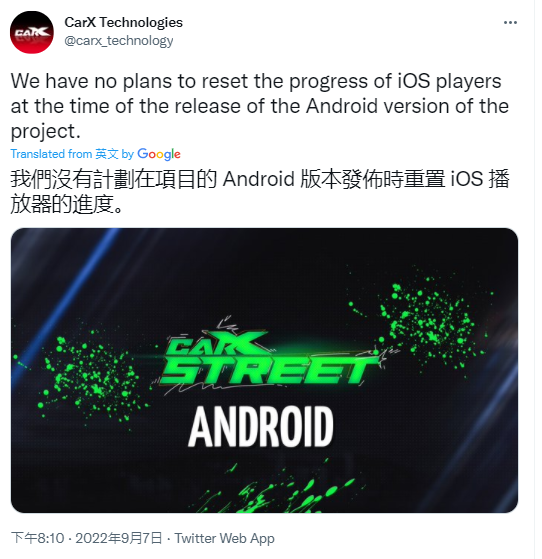 目前《CarX Street》的安卓版本仍在加紧开发中,同时官方透露安卓版上线后并不会重置IOS版本玩家的记录。
