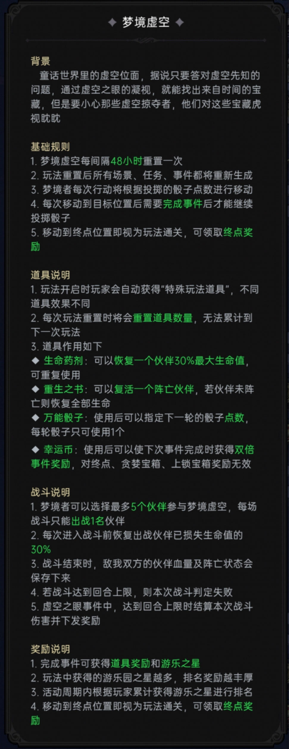 梦境之旅攻略之梦境虚空篇章鱼拉拉发布于 2022-09-16关注经过版本的不断更迭,梦境之旅玩法也得到优化和丰富,这篇攻略主要来分享梦境航海中的一些小技巧。 解锁条件:开服大于等于16天且通关8-10(即66级)❶具体规则: ❷奖励图表: ❸玩法推荐1.万能骰子:推荐占卜“大吉”虚空投掷、虚空启示、贪婪宝箱、虚空探宝均有丰厚的资源,但奖励不固定!2.双倍币:推荐利用“时空之钥”、“虚空加速”、“岔路口”此三类事件合理将双倍币利用在占卜“大吉”上,多拿游乐之星,同时提高排名!一次游乐之星过万轻轻松松!❹地图推荐地图二梦境魔域主要能多多拿取符文资源地图三梦境虚空主要能多多刷取游乐之星,争取排名