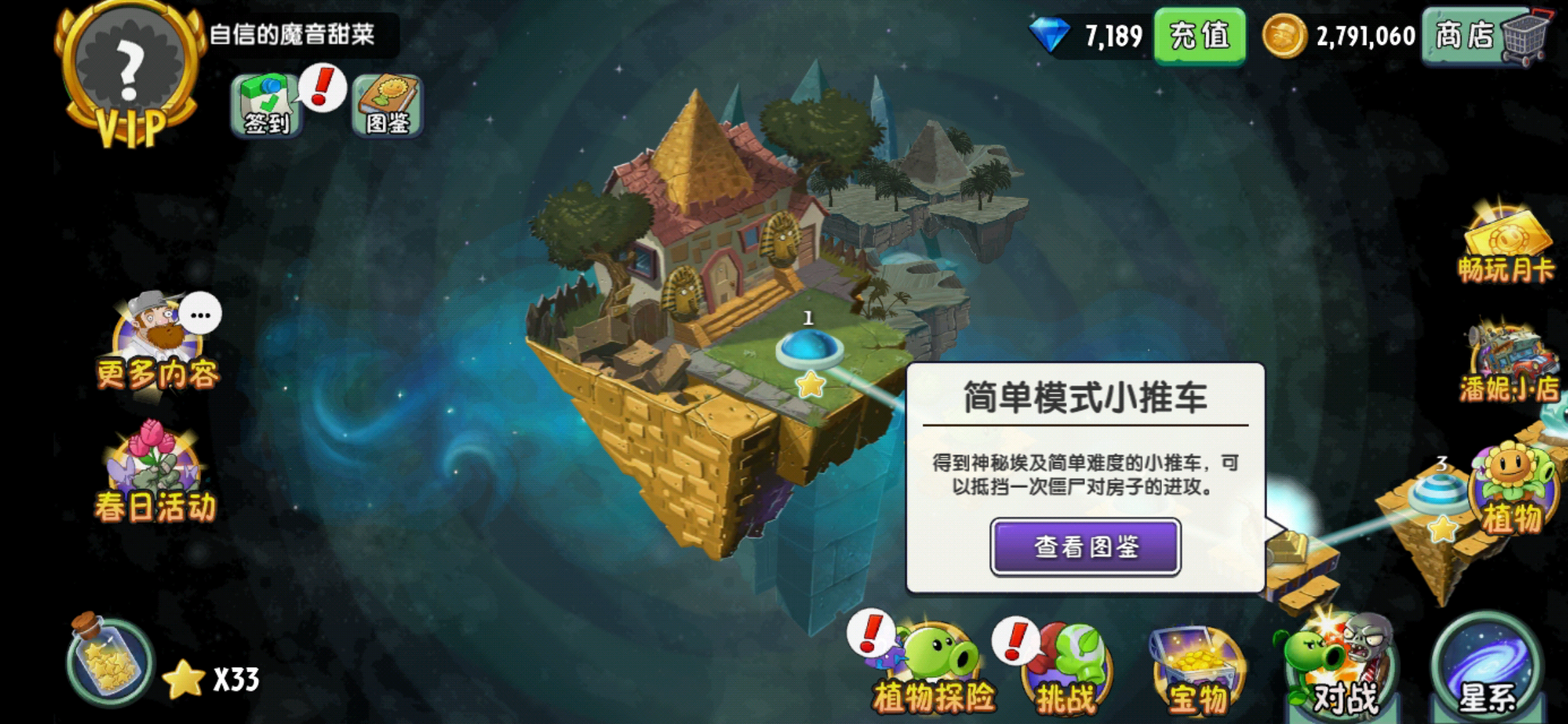 因为是第一个地图,所以自然会有一些npc的提示的,像是每次出现新的场景戴维还有商店车都会出现给玩家进行简单的解释让玩家可以快速的进入游戏状态。首先出现的第一个彩蛋就是植物,我们能看见神秘埃及一共有15个关卡,其中有几个关卡中间会有一株植物,意思就是通过了前面那一关就可以获得这株植物。而在神秘埃及地图中通关获得的植物是卷心菜投手,冰冻生菜,还有噬碑藤。
