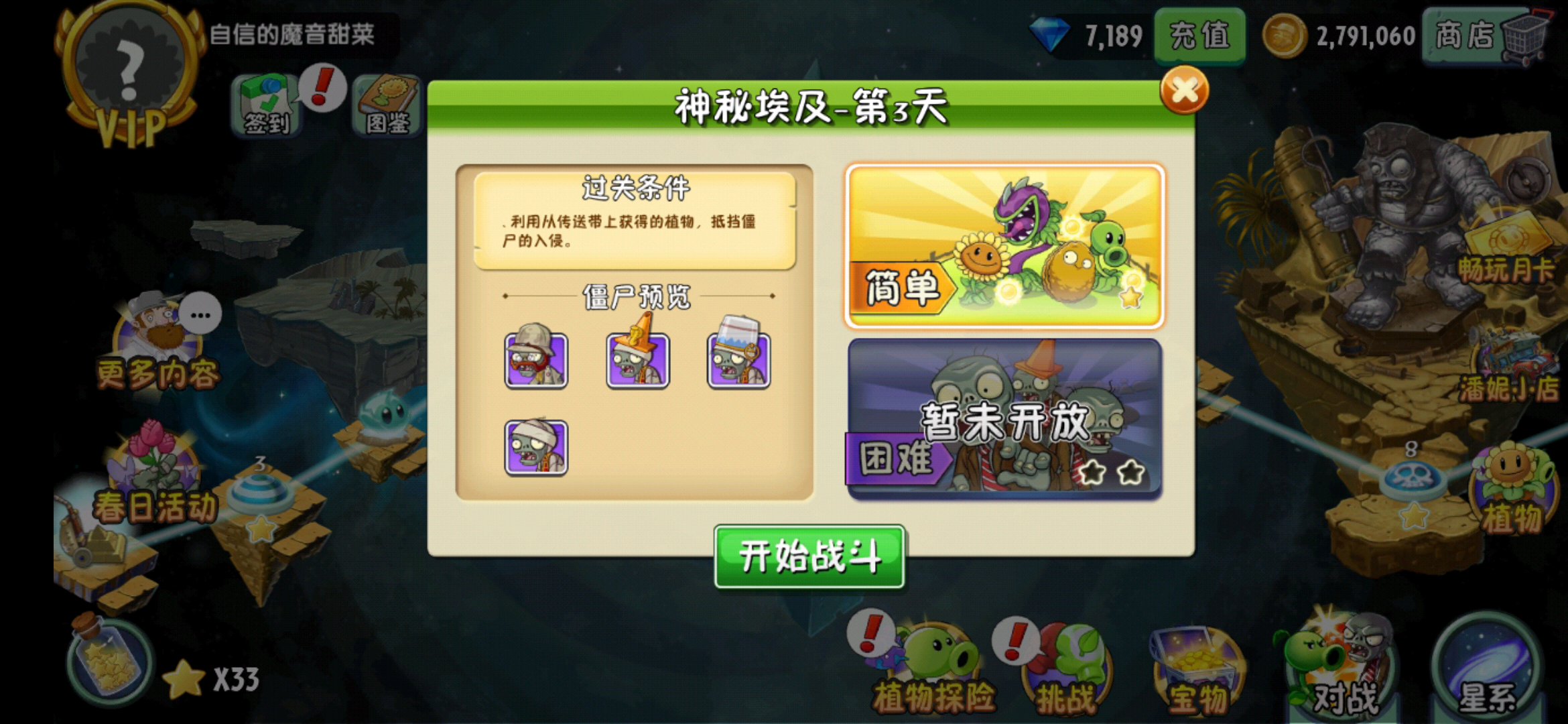 再一个彩蛋是特殊关卡,除了常规性的种植植物对抗僵尸,还有一种模式是传送带模式,从传送带上获取植物进行种植对抗僵尸。还有一种模式是拼图模式,可以说也是神秘埃及的专属关卡,玩家在关卡中完成“消消乐”就可以通关了!