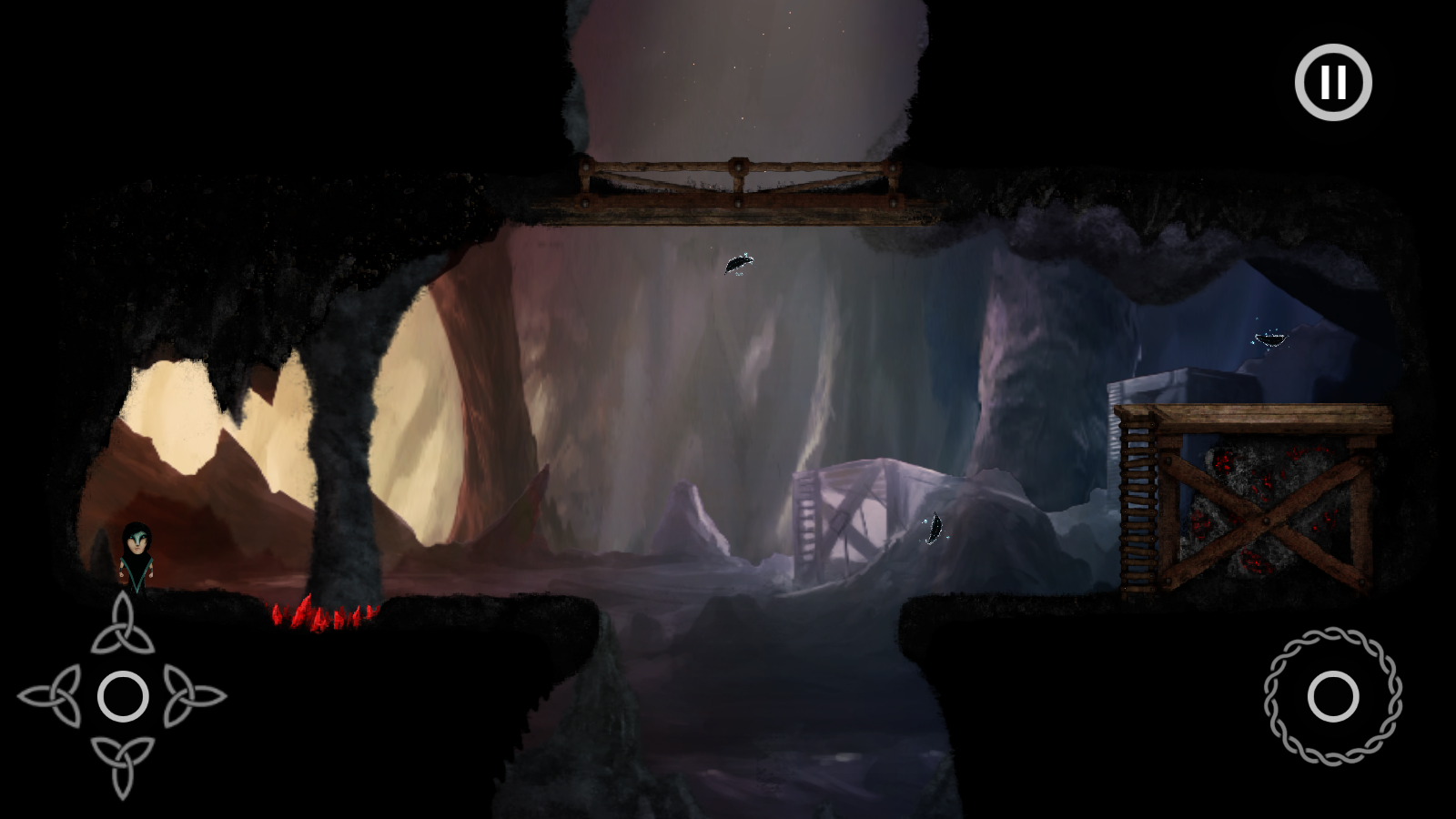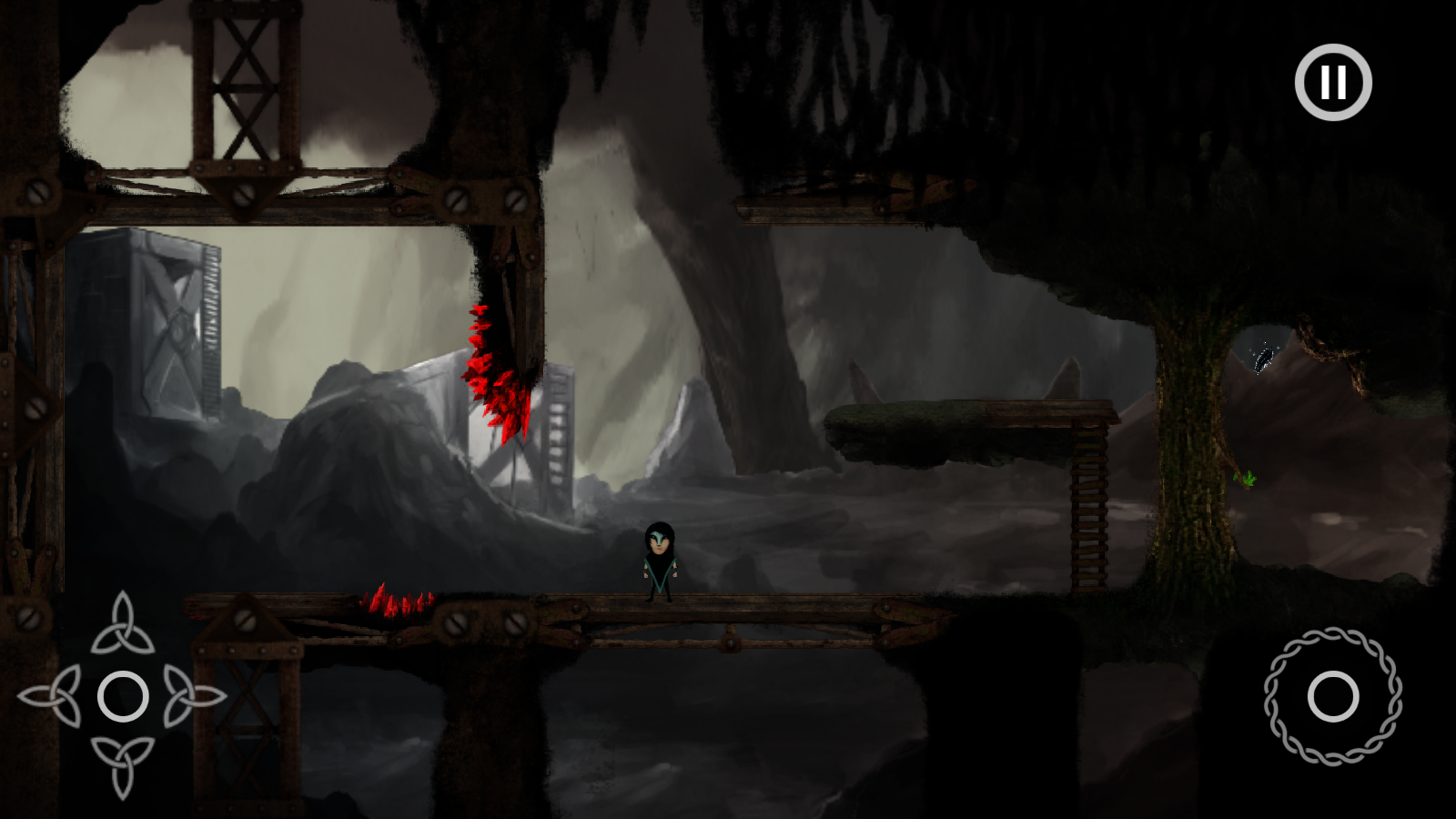 在同类横版冒险游戏中,多为玩家通过控制主角的走位和行动通过障碍,《北欧神话之雾尼》则不同,它是通过移动障碍,让主角通关。